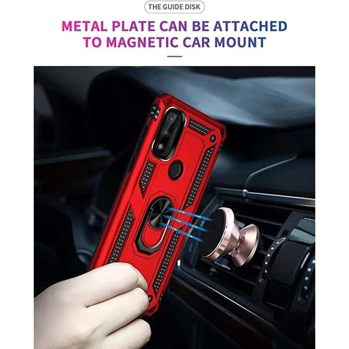 Soporte de anillo giratorio: el soporte de anillo de metal puede girar 360, fácil de girar y resistente en la funda. El soporte integrado te da la comodidad de ver videos y películas manos libres con la comodidad y estabilidad deseadas, además, la hoja magnética de metal integrada para una absorción estable, que se puede adsorber directamente al soporte magnético del coche.