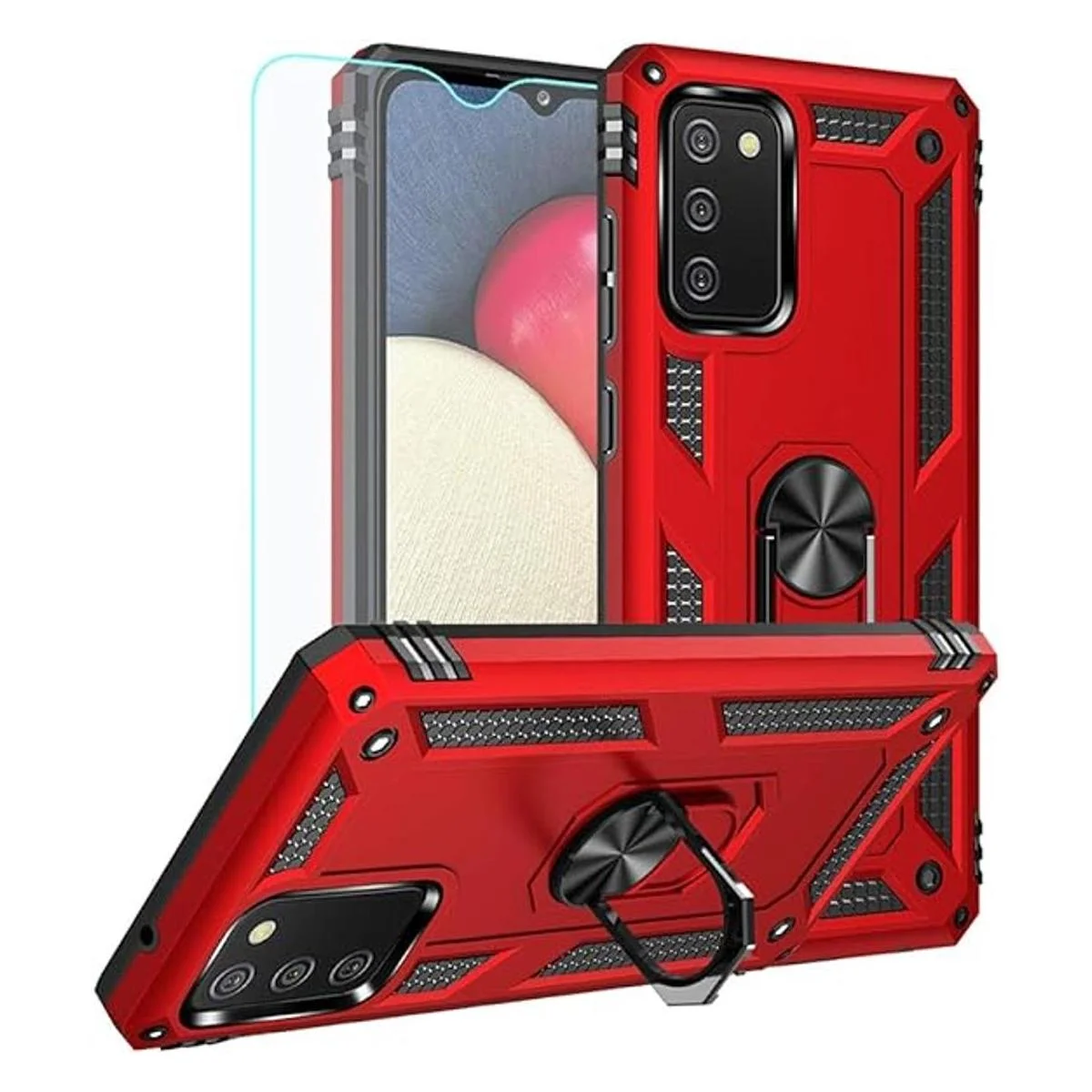 YZOK Funda para Samsung A02S, funda para Samsung A02S, con protector de pantalla HD, grado militar anillo de montaje para automóvil, policarbonato duro híbrido suave de poliuretano termoplástico a prueba de golpes, funda protectora para Samsung Galaxy A02S rojo