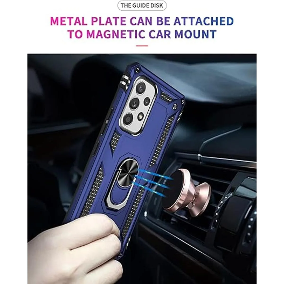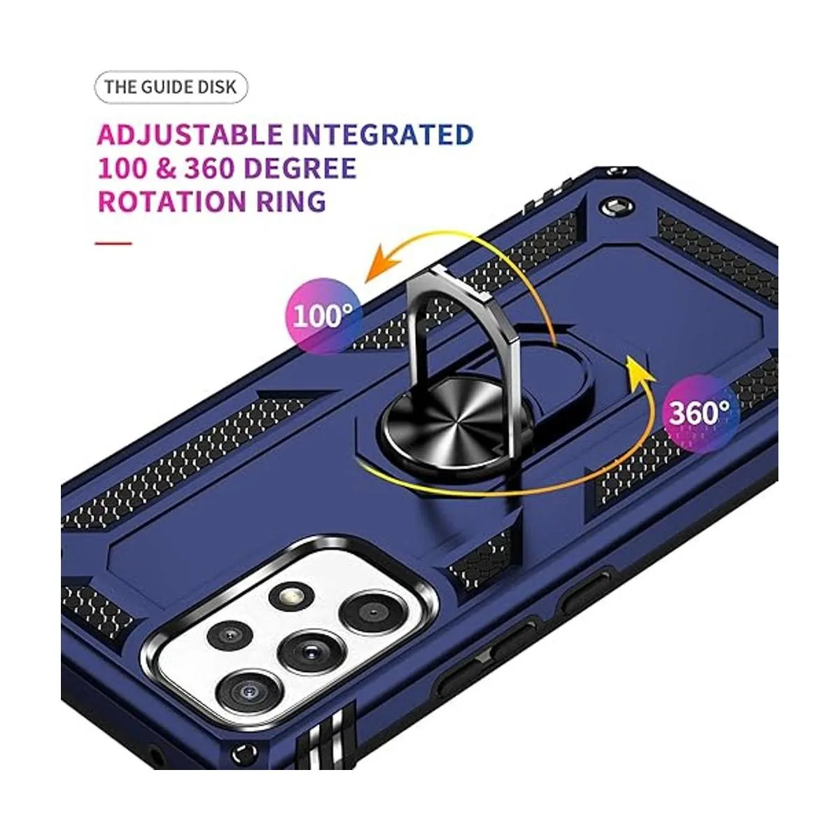 Soporte de anillo giratorio: el soporte de anillo de metal puede girar 360, fácil de girar y resistente en la funda. El soporte integrado te da la comodidad de ver videos y películas con manos libres con la comodidad y estabilidad deseadas. Además, la hoja magnética de metal integrada para una absorción estable, que se puede adsorber directamente al soporte magnético para el coche.