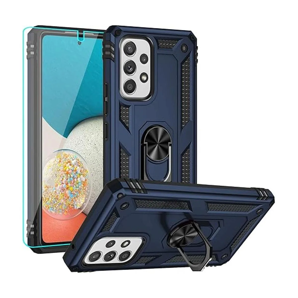 YZOK Funda para Samsung Galaxy A53, Galaxy A53 5G con protector de pantalla HD, grado militar Ring Car Mount Kickstand híbrido duro PC suave TPU a prueba de golpes para Samsung A53 azul