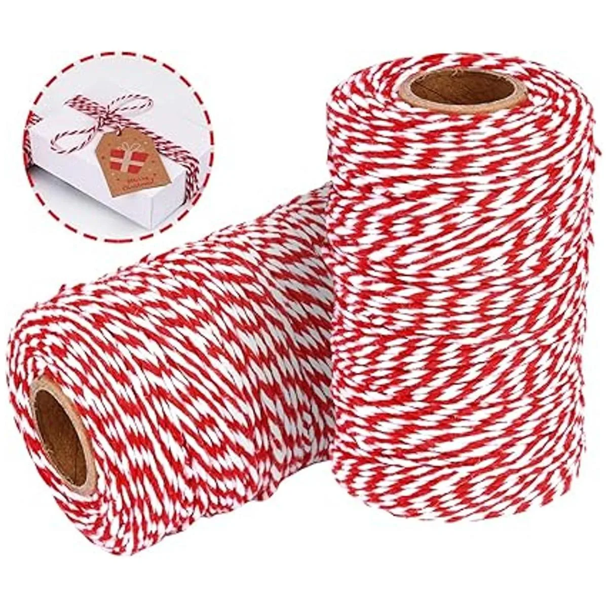 YZSFIRM 2 rollos de cuerda de 0.079 in, cuerda de algodón de jardín rojo y blanco, cuerda de embalaje para envolver regalos y manualidades 656 pies