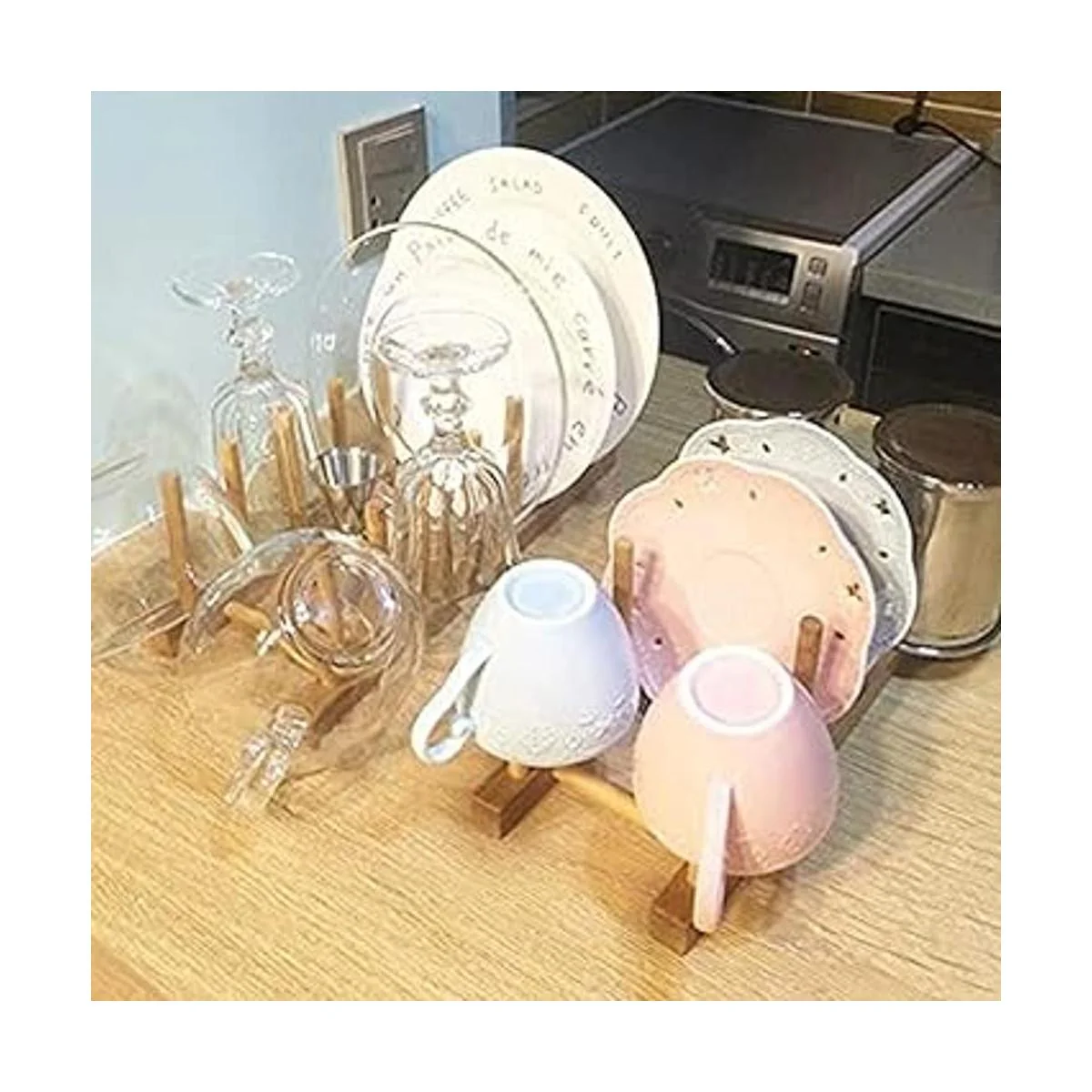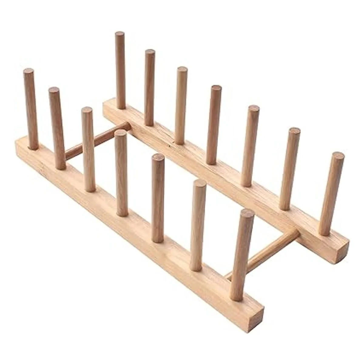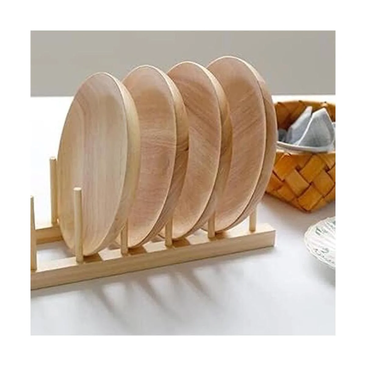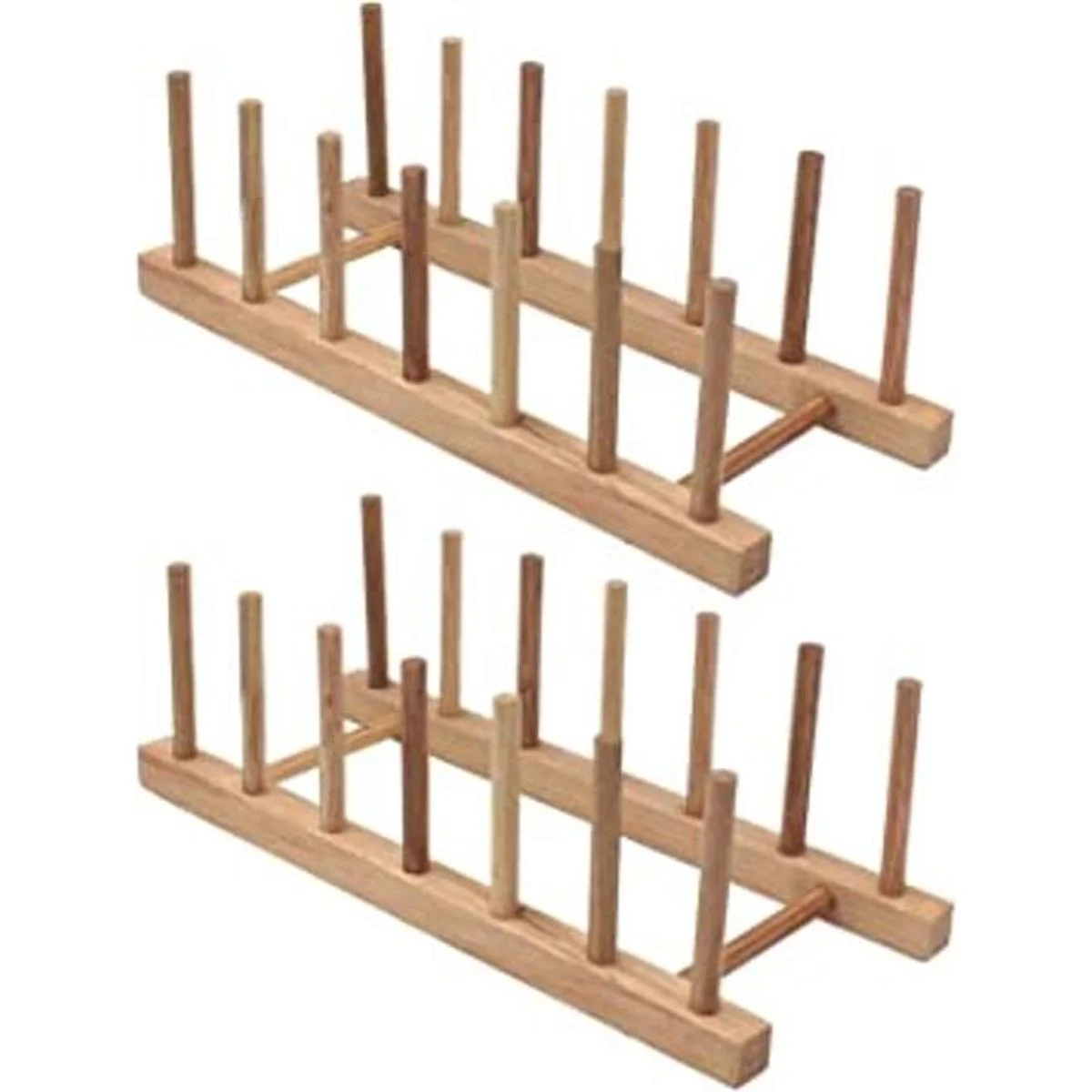 Z ZICOME Juego de 2 estantes de madera de bambú para platos, soporte para tapa de maceta, organizador de gabinete de cocina