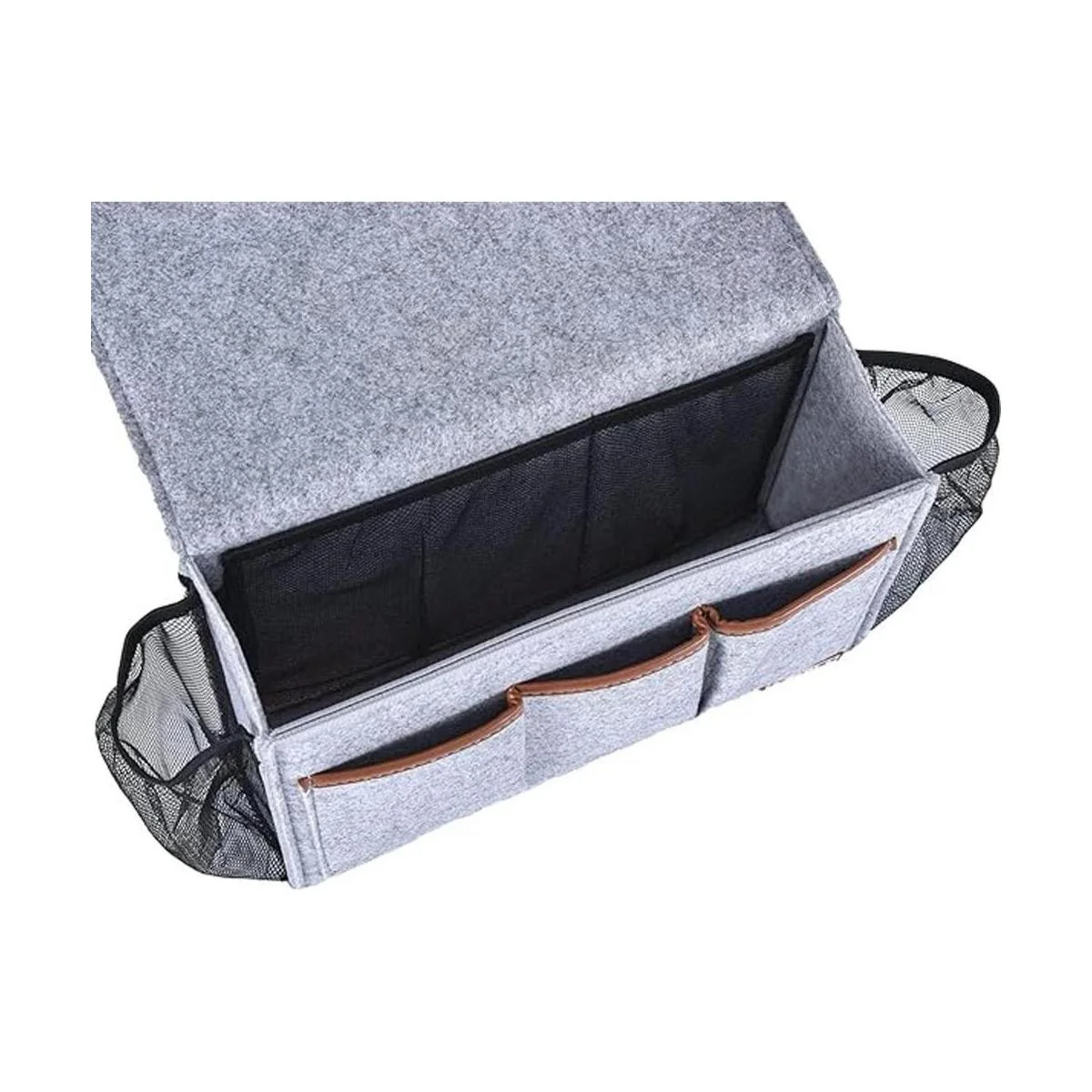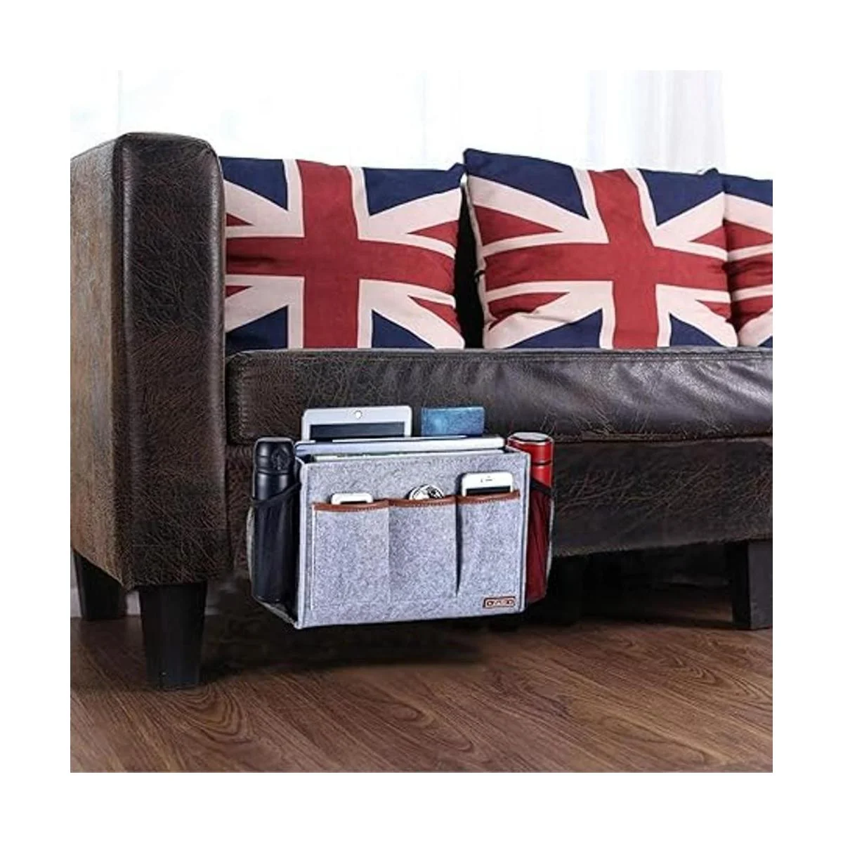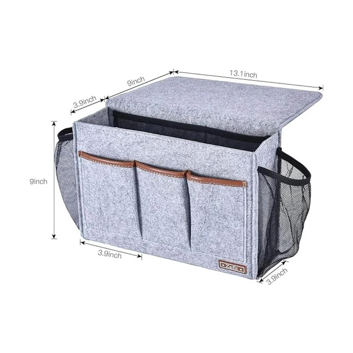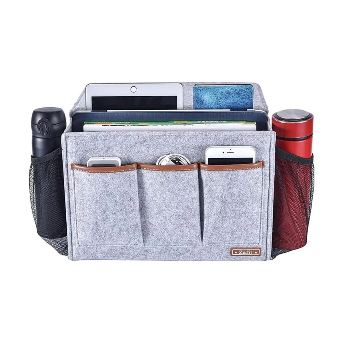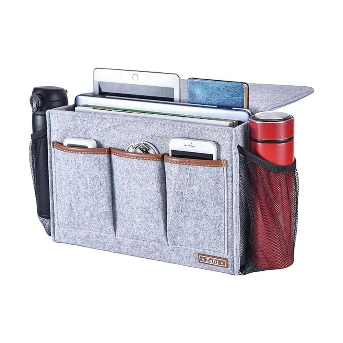 Zafit Organizador de noche de 8 bolsillos, organizador de noche de gran tamaño para revistas y teléfonos remotos 13.4 x 18.1 pulgadas, tamaño grande, gris claro