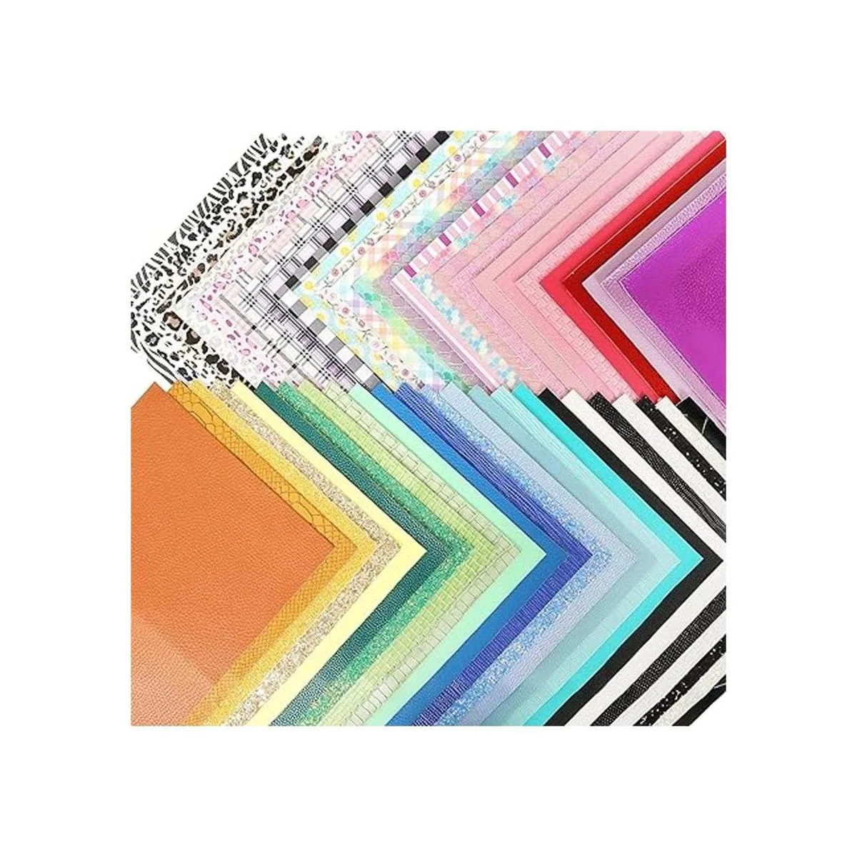 ZAIONE Hojas de piel sintética al azar 20 piezas de cuero con estampado a cuadros con purpurina, textura de grano de 8 x 12 pulgadas, patrón de colores en relieve para aretes, manualidades