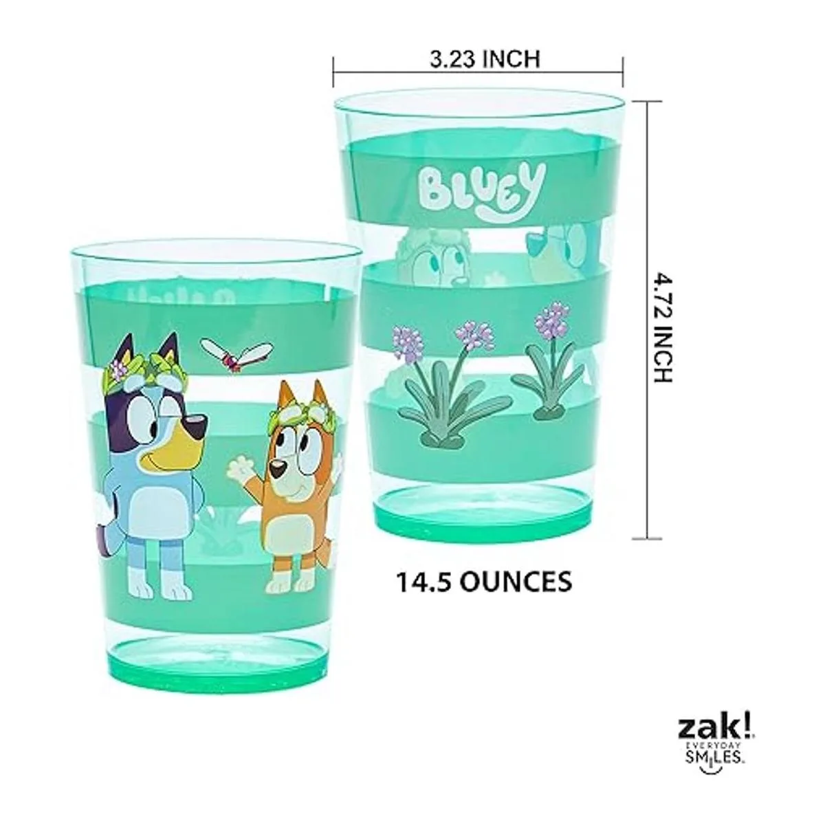 Zak Designs El juego de vasos Bluey Nesting incluye vasos de plástico duraderos con diversas obras de arte, los divertidos vasos son perfectos para niños 14.5 onzas, paquete de 4, sin BPA