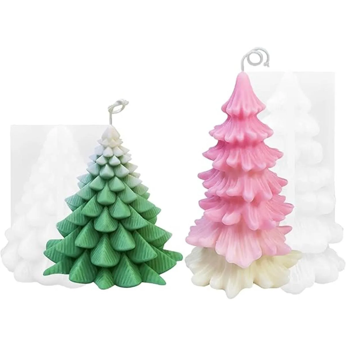 ZAKVOOR 2 piezas 3D de resina en forma de árbol de Navidad, molde de silicona para decoración de Navidad, velas de aromaterapia, yeso de cera y arcilla polimérica