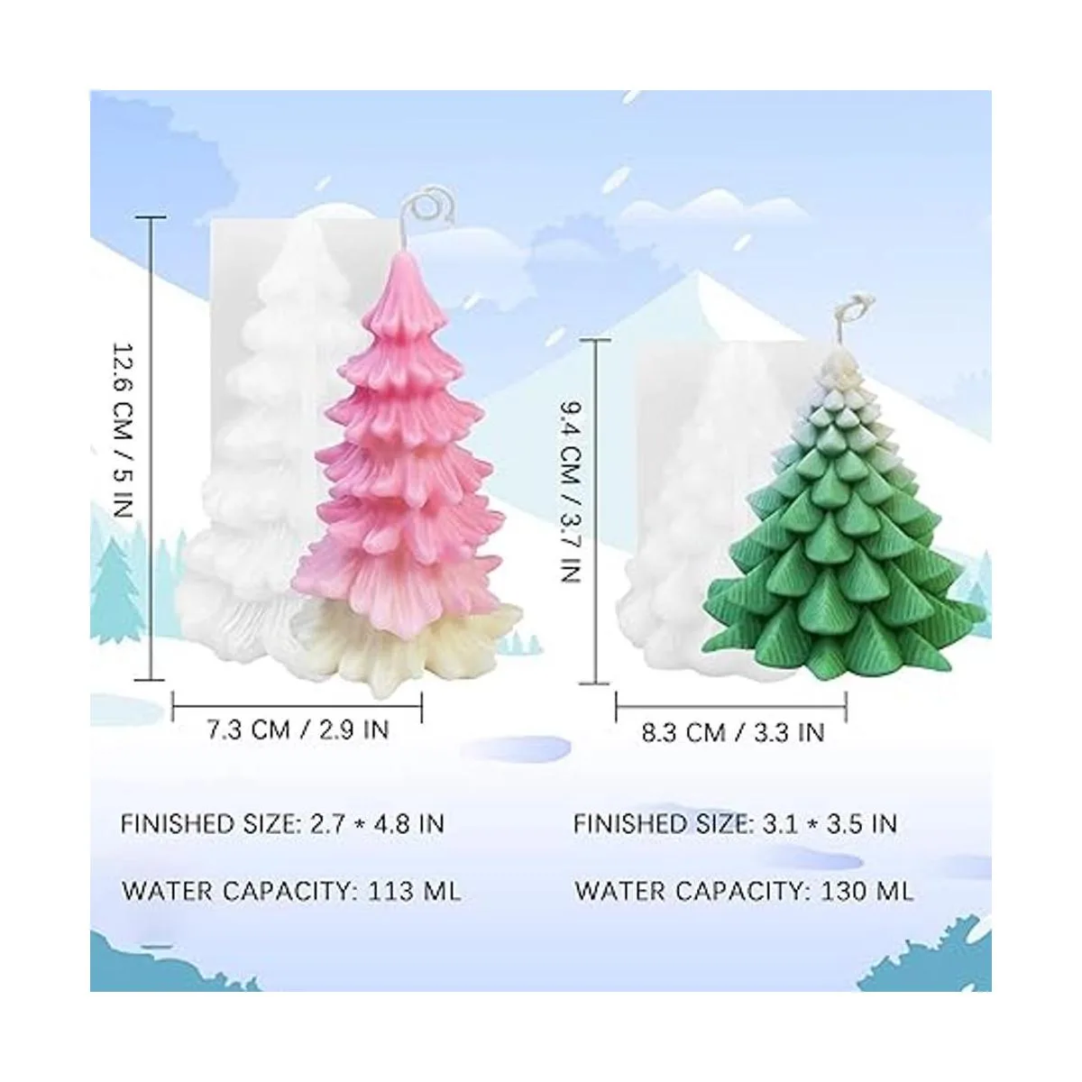 El paquete incluye: recibirás 2 moldes de silicona diferentes para árbol de Navidad, ideal para hacer decoración de bricolaje en tus fiestas temáticas de Navidad, carnaval.