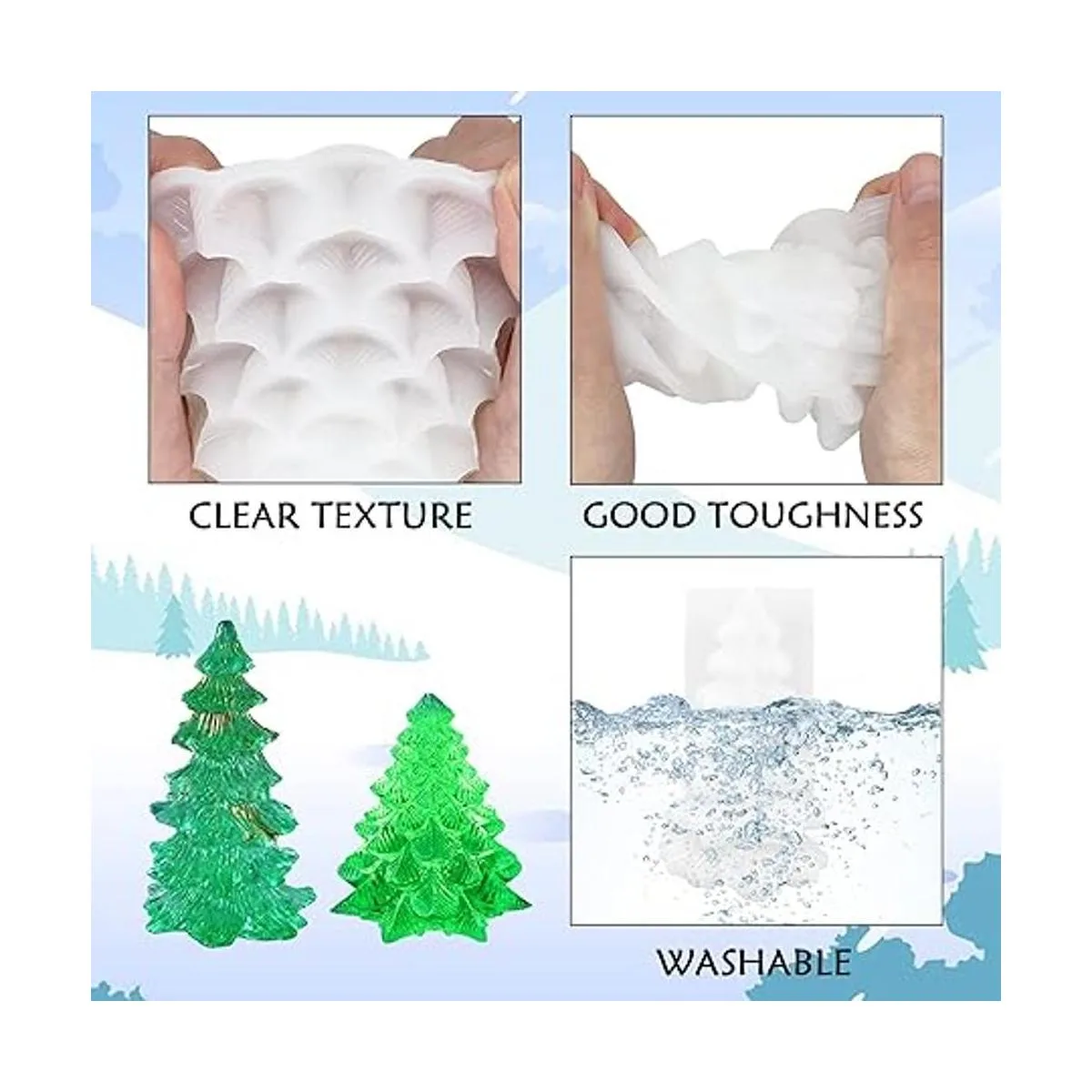 Amplia aplicación: los moldes de resina para árbol de Navidad no solo hacen algunas decoraciones de resina epoxi de Navidad, también son perfectos para velas, jabones, decoración de yeso, decoraciones, arcilla polimérica y otros adornos hechos a mano, etc.