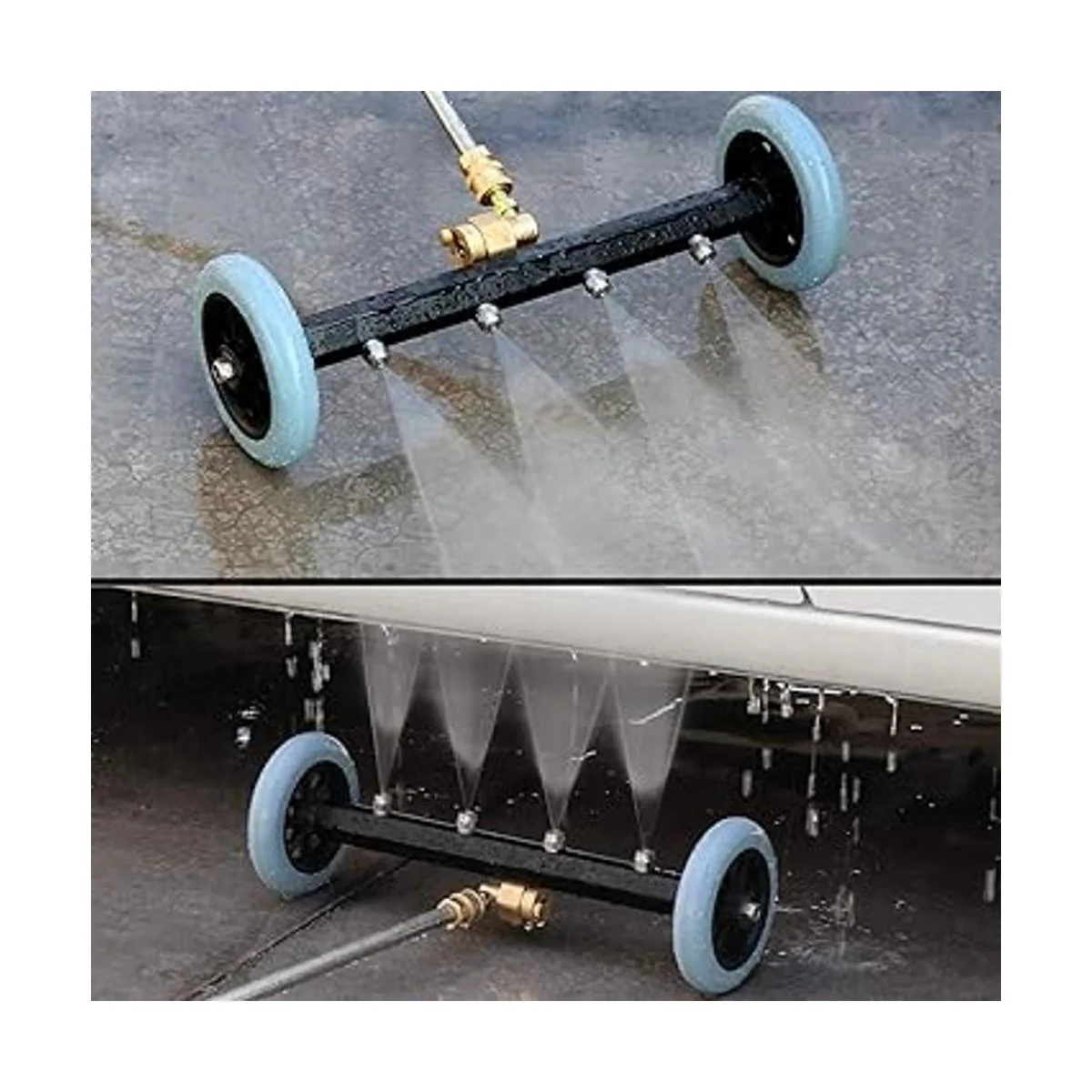 Modo de limpieza para debajo del transporte: el modo de limpieza del tren de rodaje evita que se arrastre debajo del vehículo. Perfecto para limpiar la suciedad de la carretera, la contaminación de aceite y combustible debajo de camiones, SUV, coches, vehículos comerciales y remolques.
