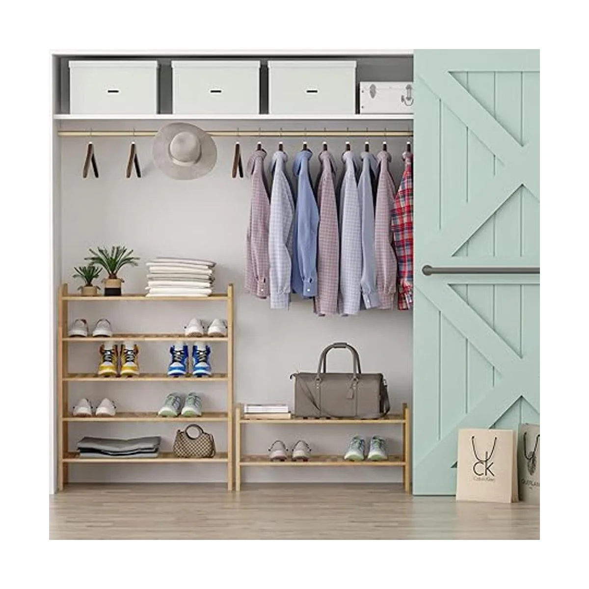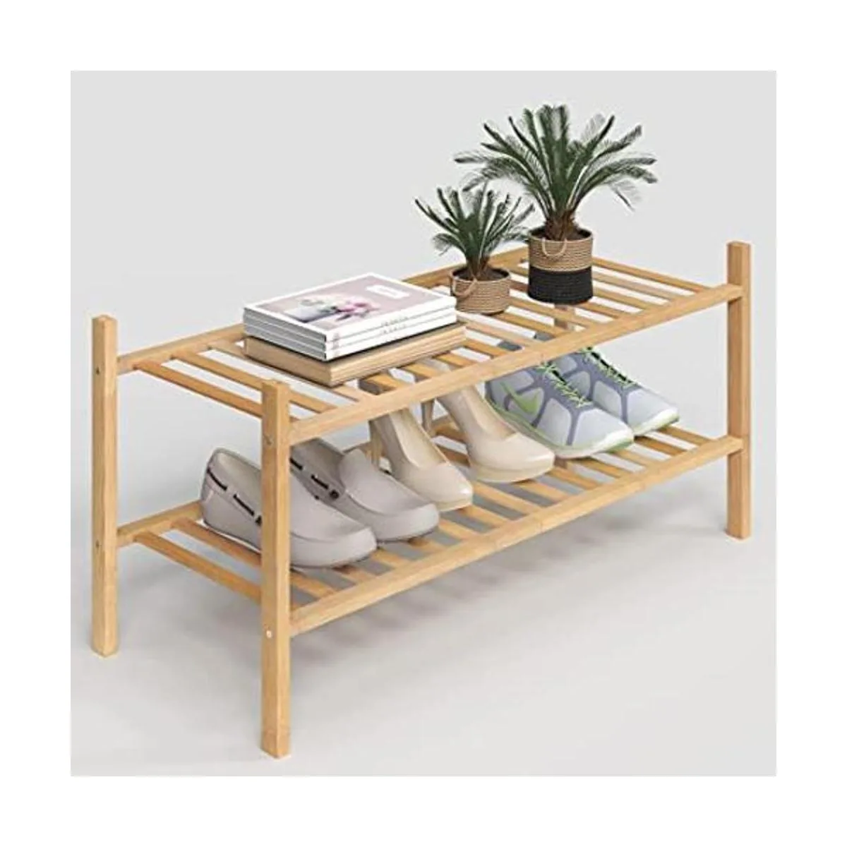 Zapatero de 2 niveles para armario, organizador apilable para zapatos, estante de pie independiente para entrada y pasillo, estante de bambú multifuncional en diferentes combinaciones (2 niveles)