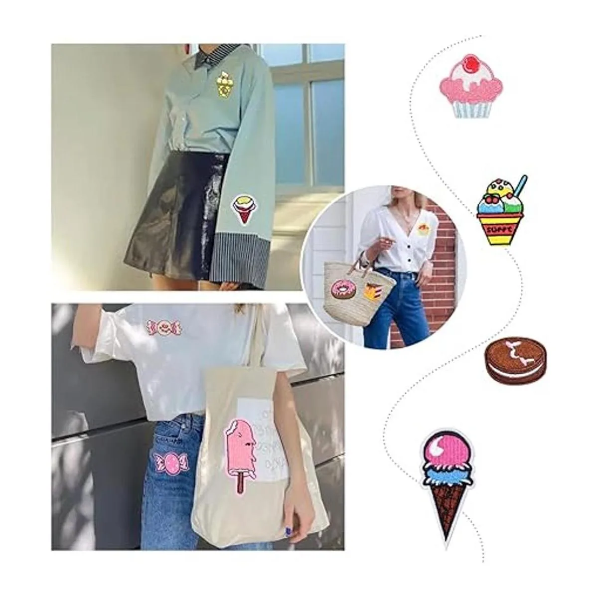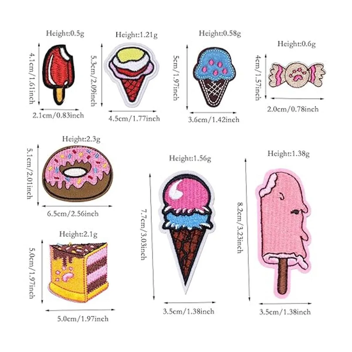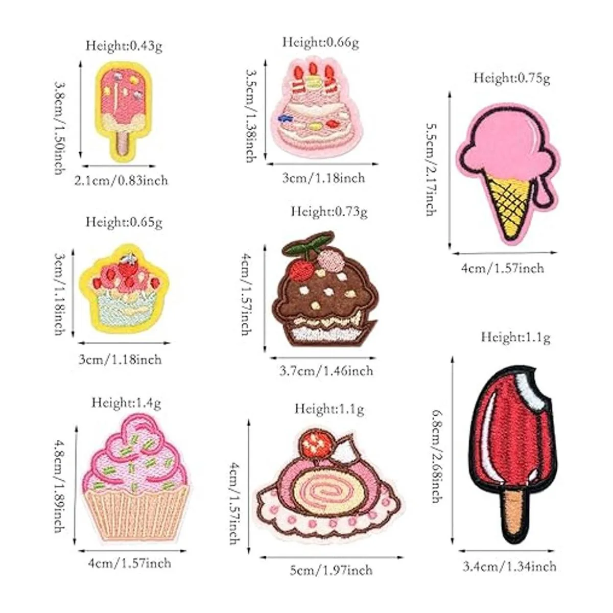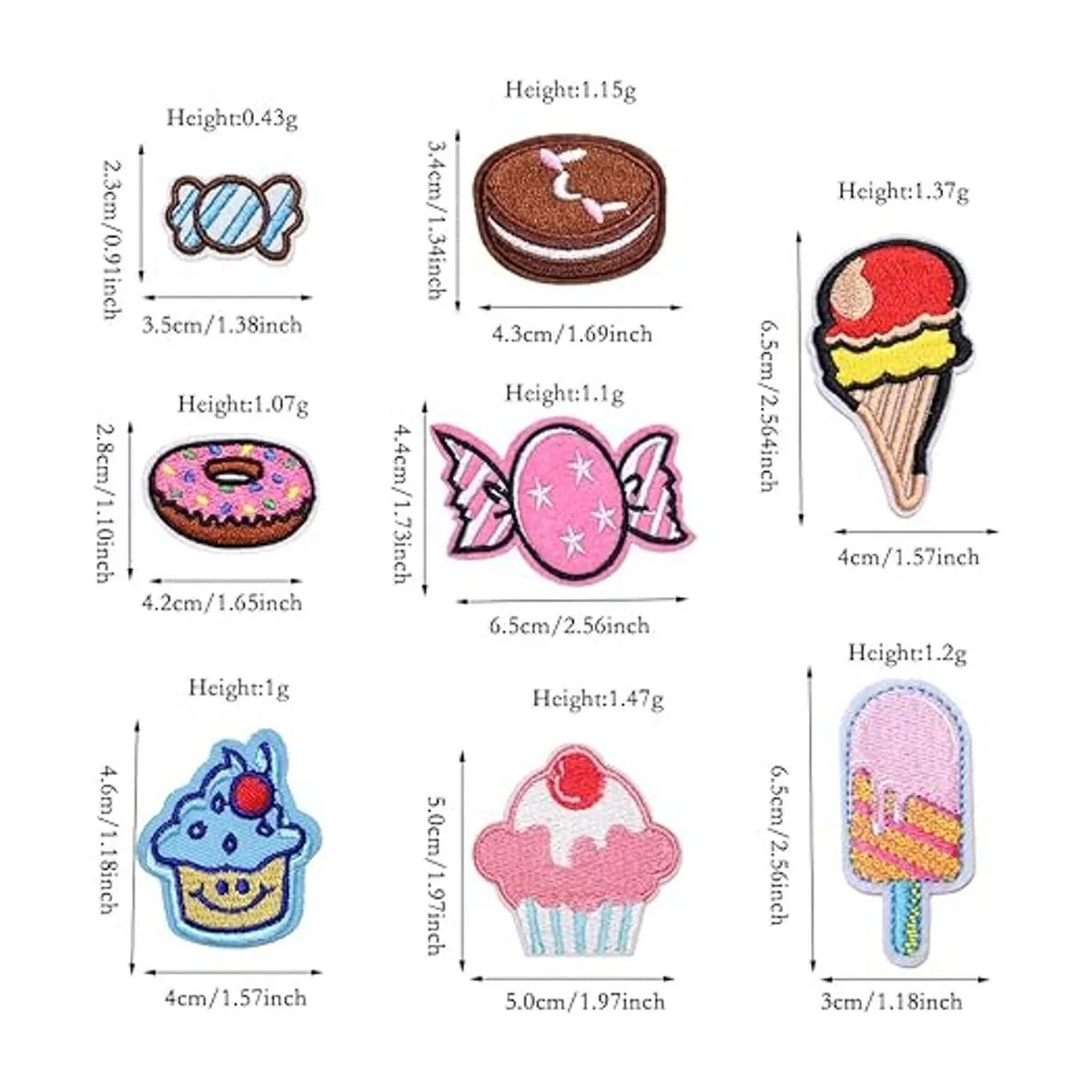 Zayookey 32 parches bordados de dibujos animados, parches de helado, parches para planchar, tartas, caramelos, rosquillas, coser en insignias para ropa, pantalones, jeans, zapatos, mochila, reparación parche de la serie de postres