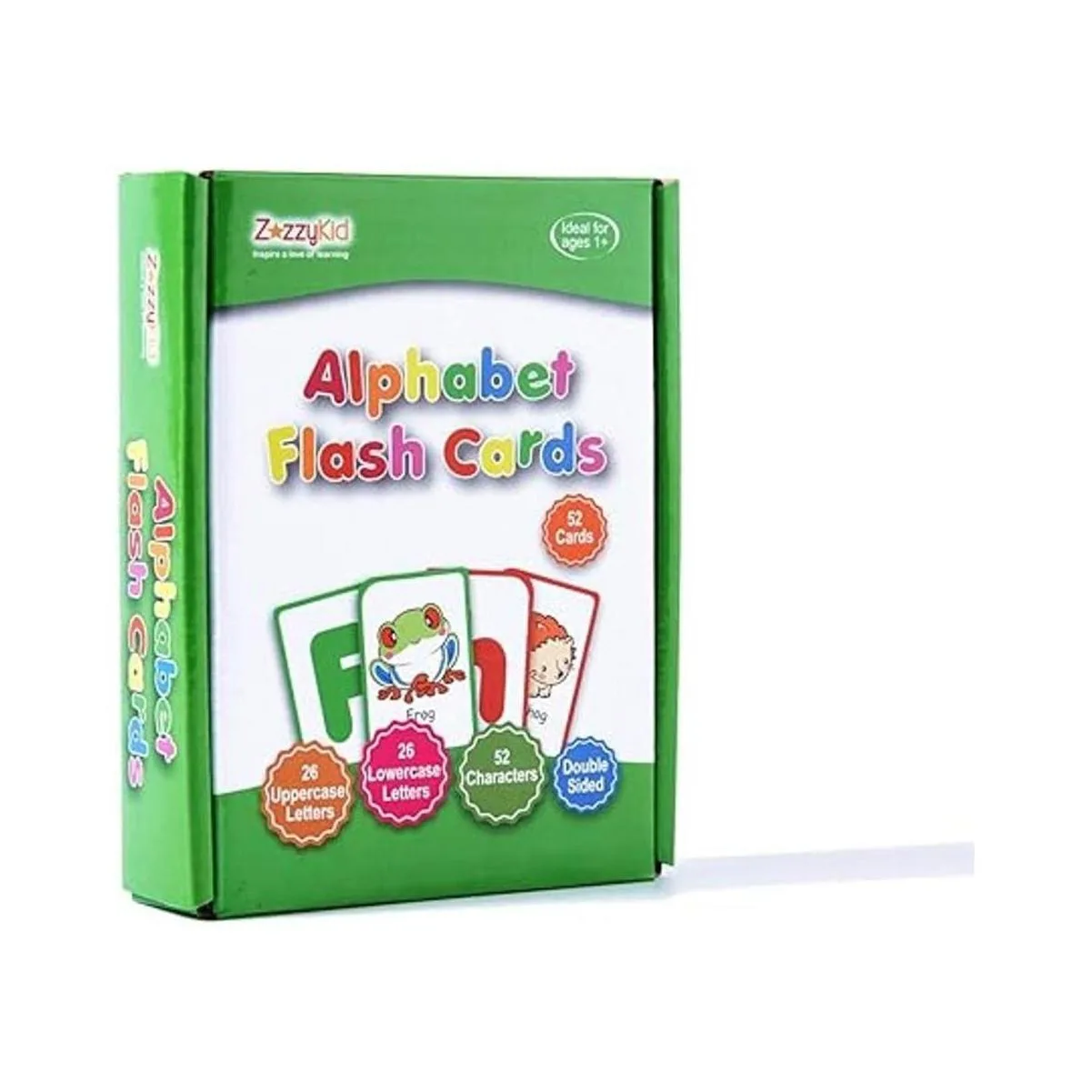 ZazzyKid Tarjetas flash del alfabeto para niños enseña letras y palabras ABC para niños, 52 tarjetas de doble cara Aprendizaje preescolar