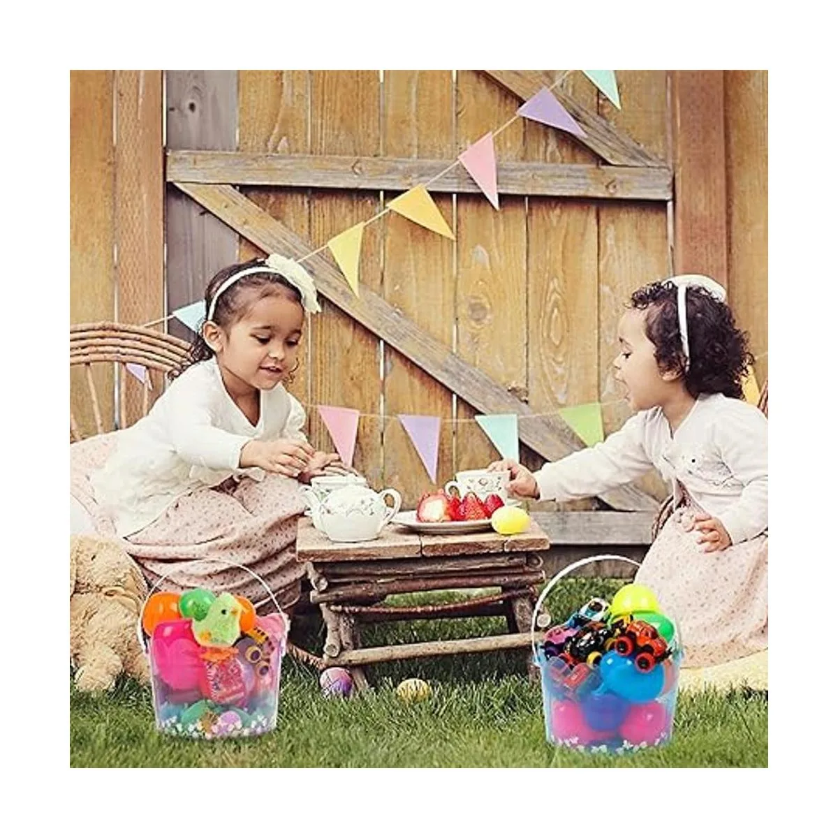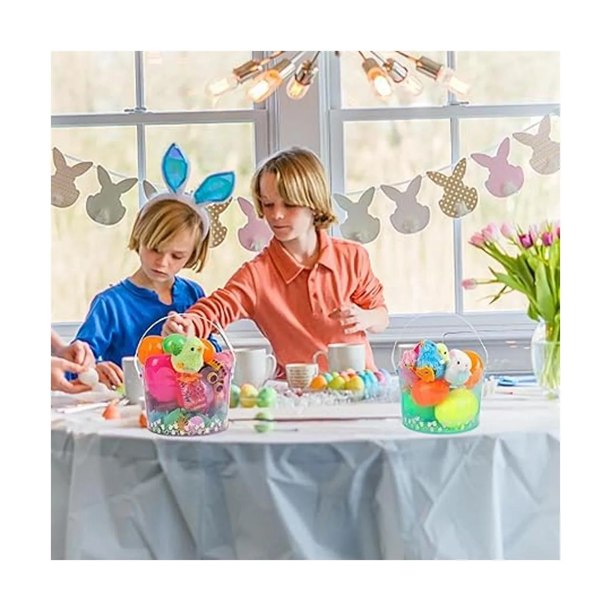 Zcaukya Juego de 3 cubos de Pascua para la caza de huevos, cestas de Pascua de plástico transparente para niños con asas, cubos de plástico vacíos de Pascua para recuerdos de fiesta de Pascua, verde, azul, morado