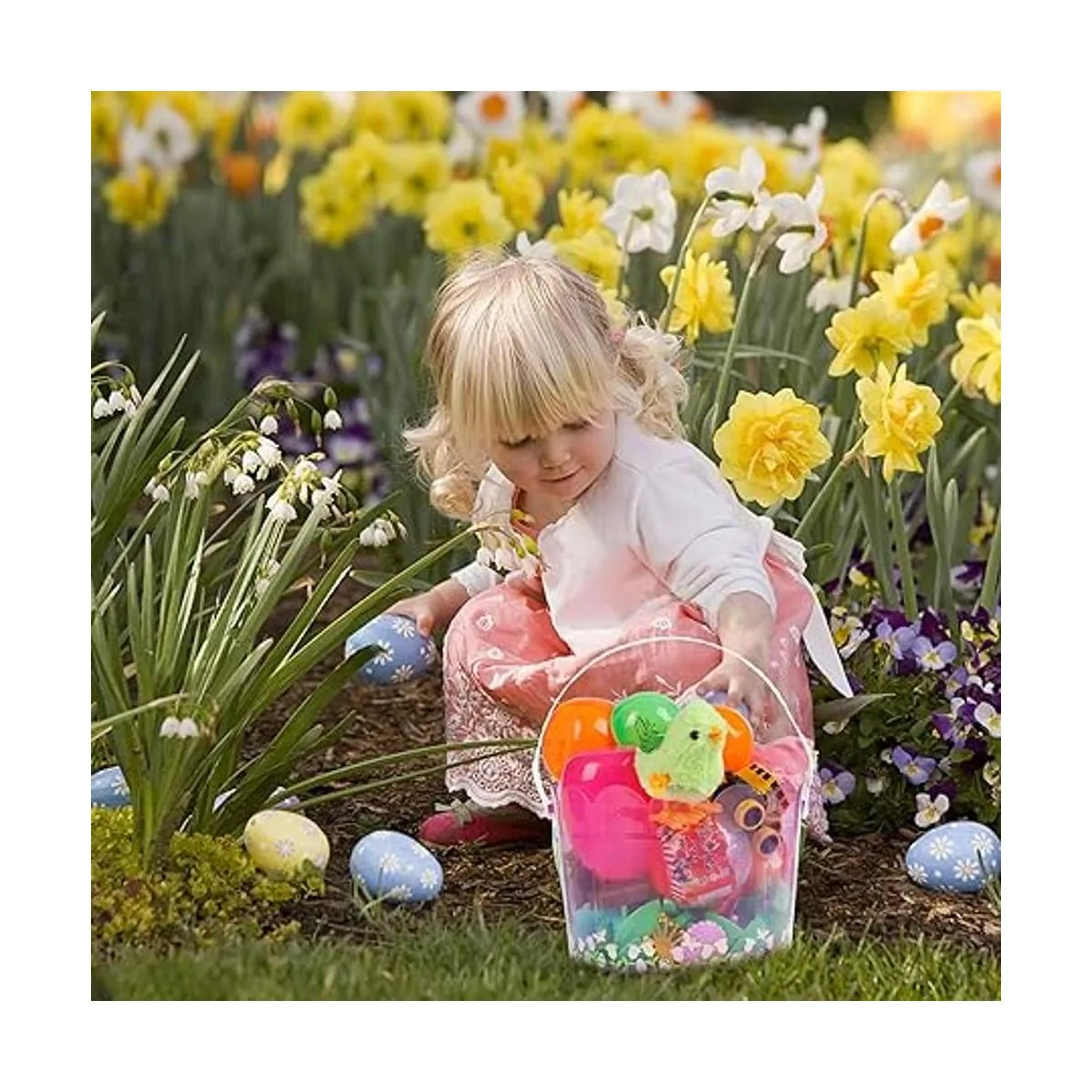 Adorables diseños de Pascua: flores, mariposas y huevos de Pascua añaden un gran toque adorable de Pascua y primavera a los cubos de plástico de Pascua Zcaukya. El material de plástico transparente permite que se vea el interior y el borde redondo similar a pétalos le da un toque romántico y encantador.
