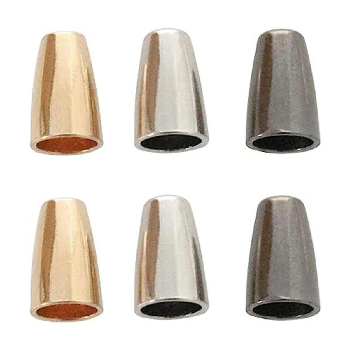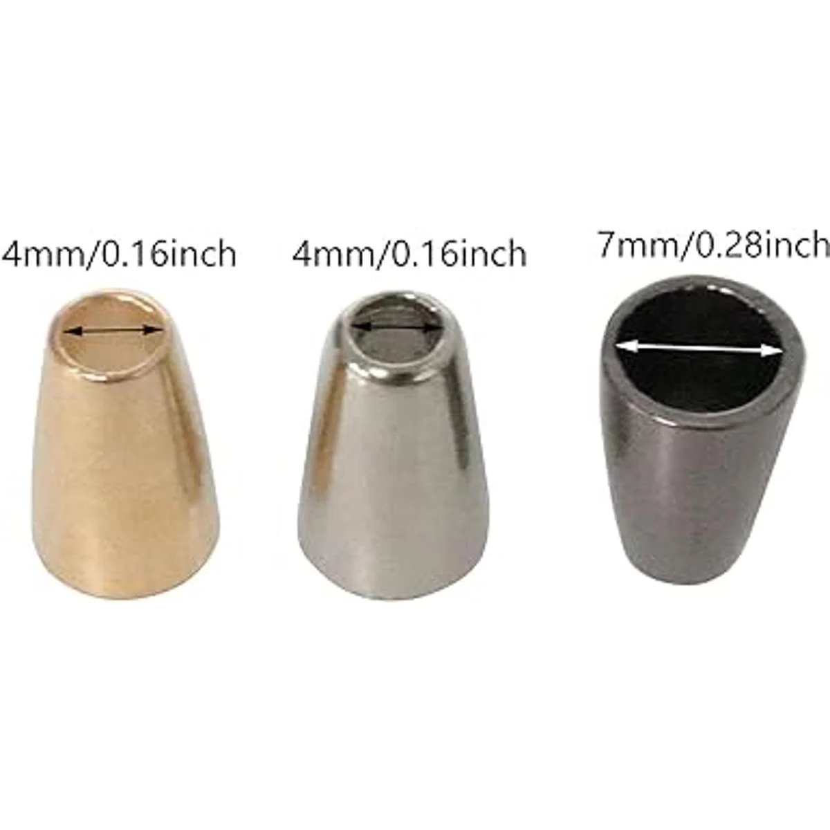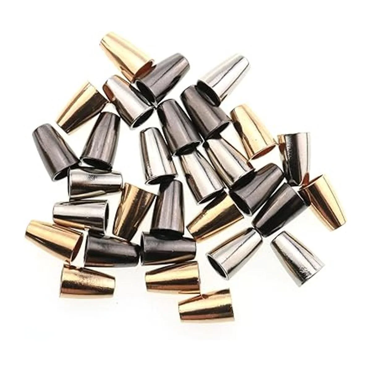 ZCZQC Metall Bell Tope de 30 piezas de metal cónico, cierre de cuerda, tope de extremo para cordón, ropa, mochila, bolsas, plata, oro claro y negro, 0.157 x 0.276 x 0.512 in, Plateado, Dorado, Negro