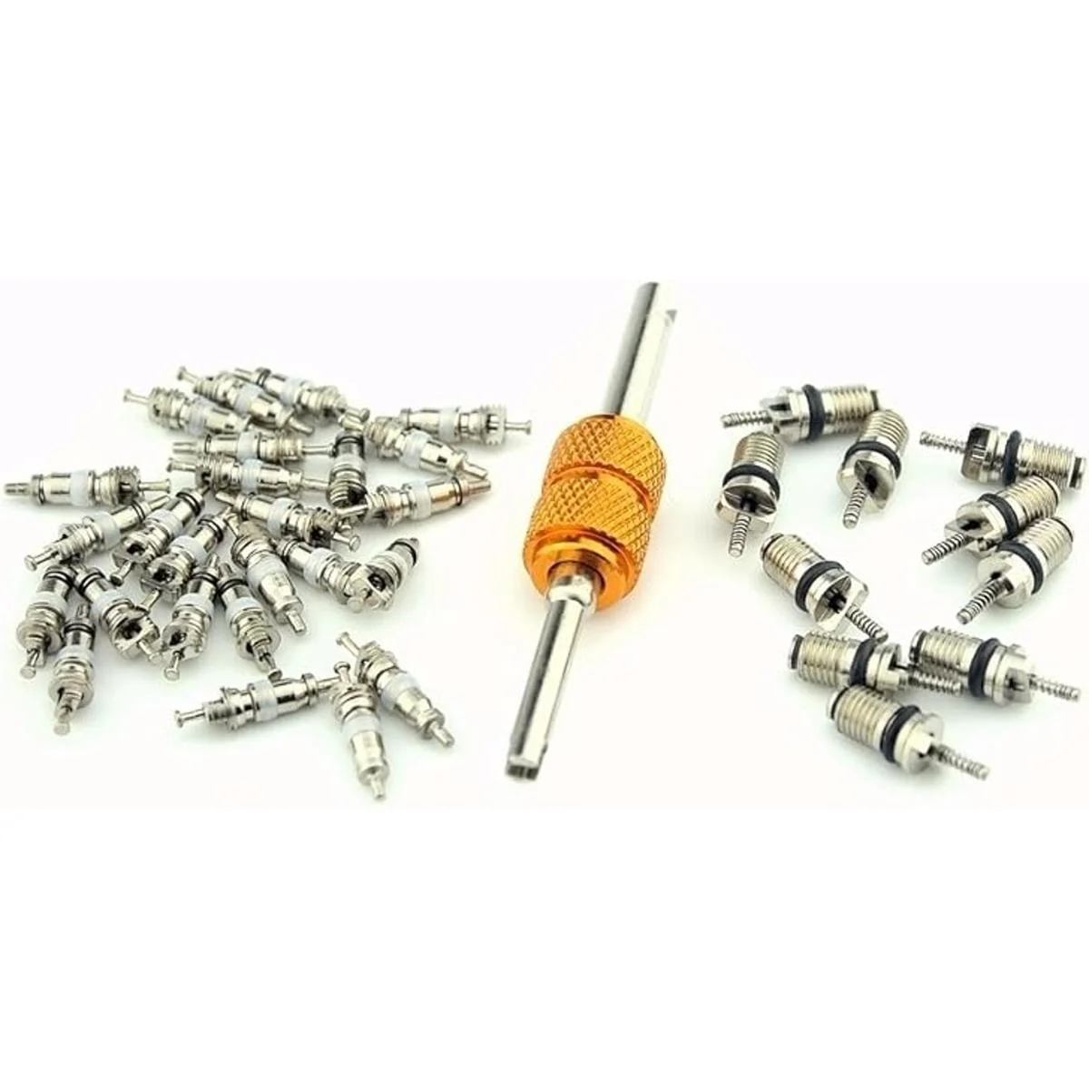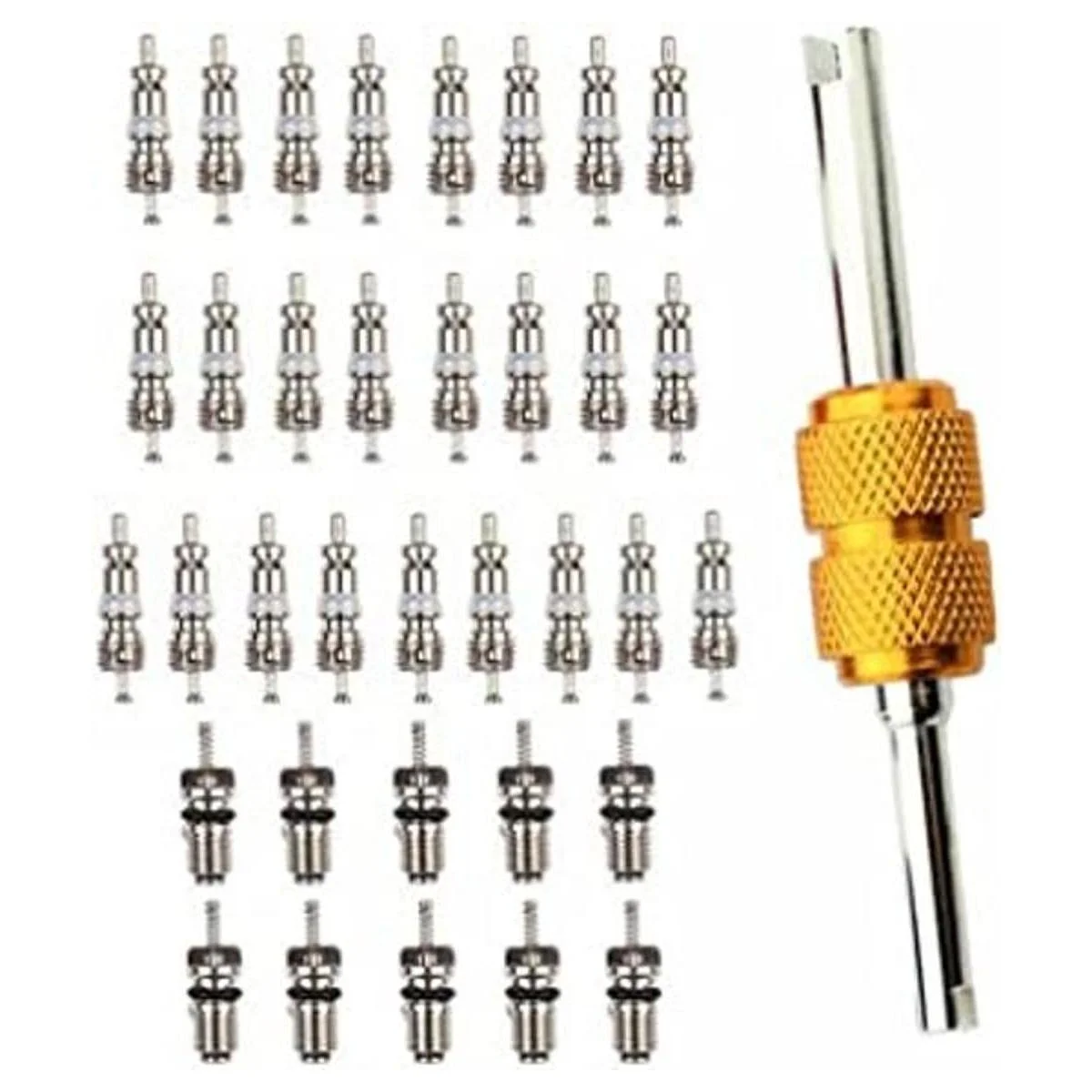 Paquete: este kit incluye 35 núcleos de válvula de cobre con 1 herramienta de instalación de extracción.