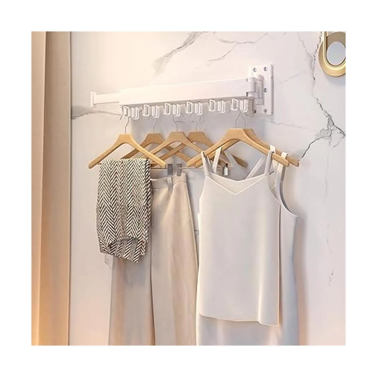ZdwCyl Tendedero de secado de ropa, soporte de pared para ahorrar espacio, estante de ropa montado en la pared, retráctil, plegable triple, estante de secado de color blanco anillo