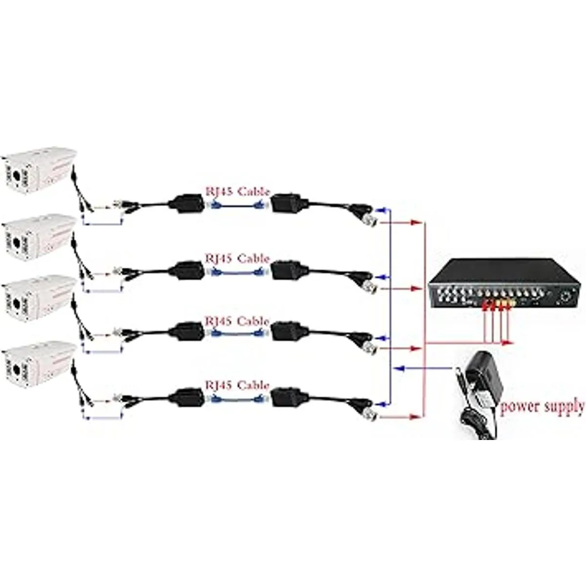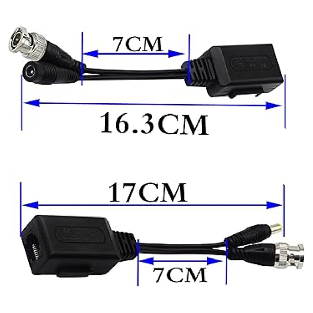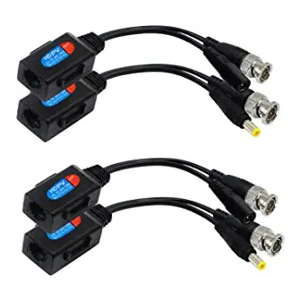 zdyCGTime Balun HD Cat5 RJ45 a BNC Video Baluns transceptor pasivo con conector de alimentación para cámara 720P 1080P 3MP 4MP 5MP 8MP HDCVITVIAHDCVBS960H 2 pares