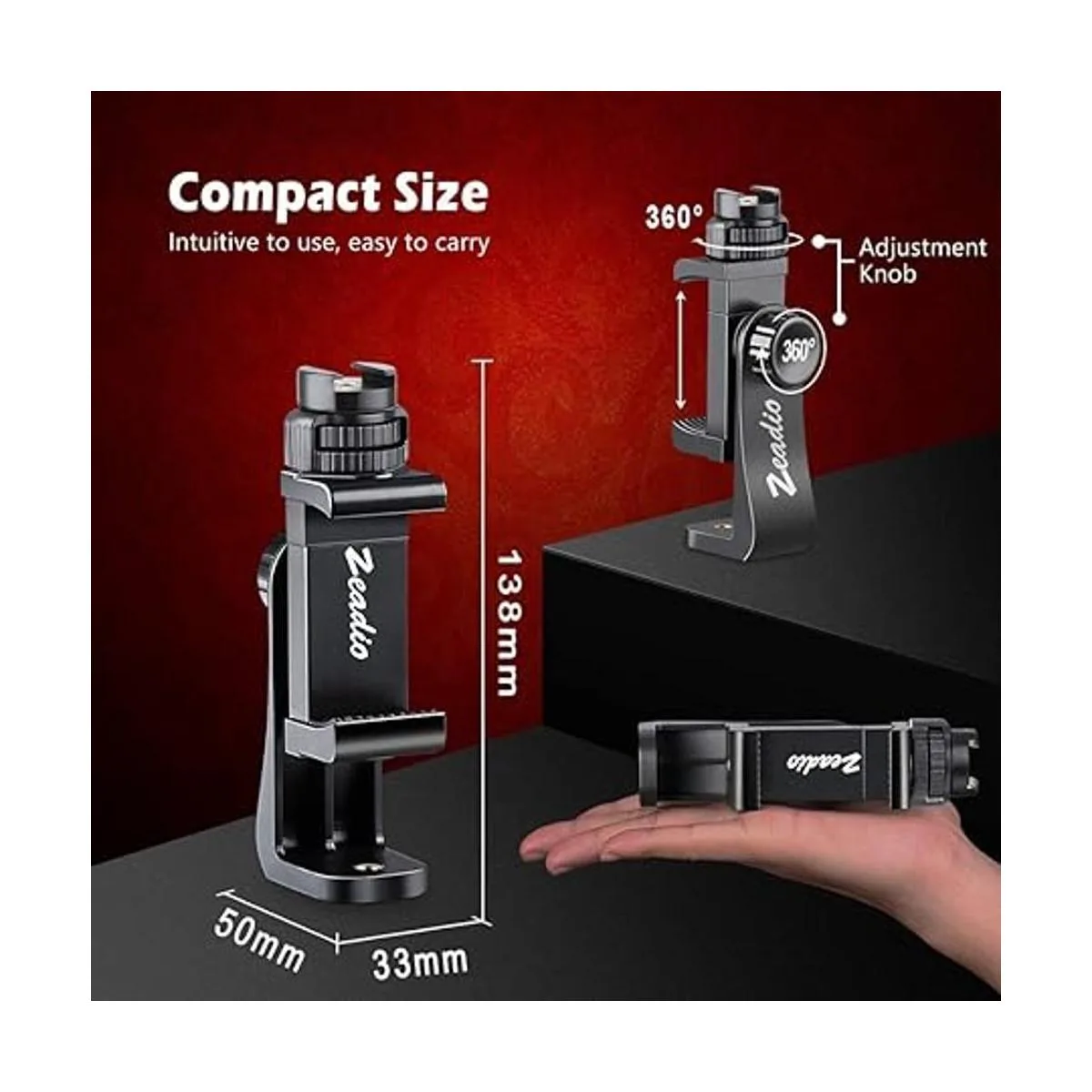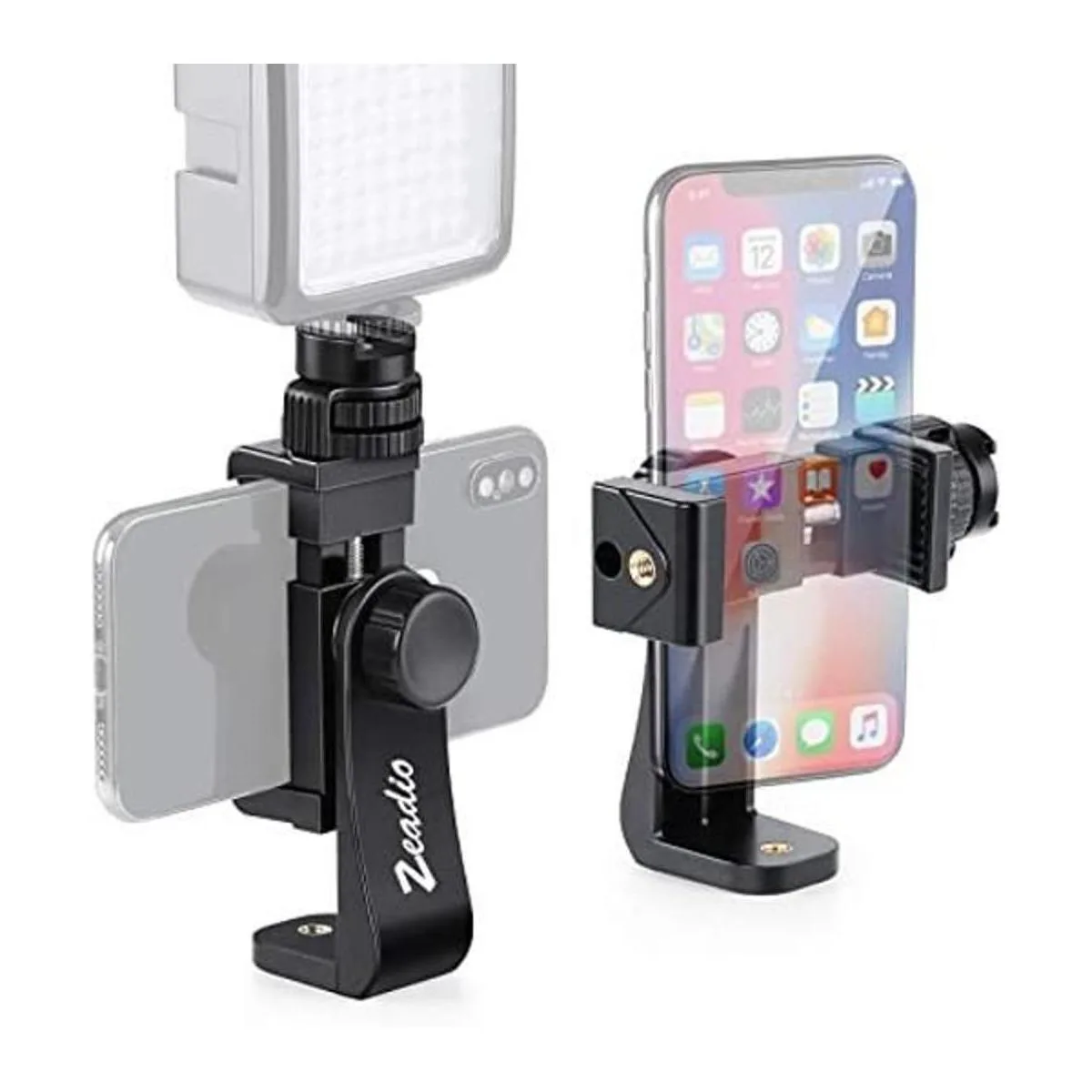 Zeadio Soporte para trípode para smartphone, soporte para teléfono celular con soporte de zapata caliente, soporte para selfie y monopod ajustable, se adapta a todos los smartphones iPhone y Android