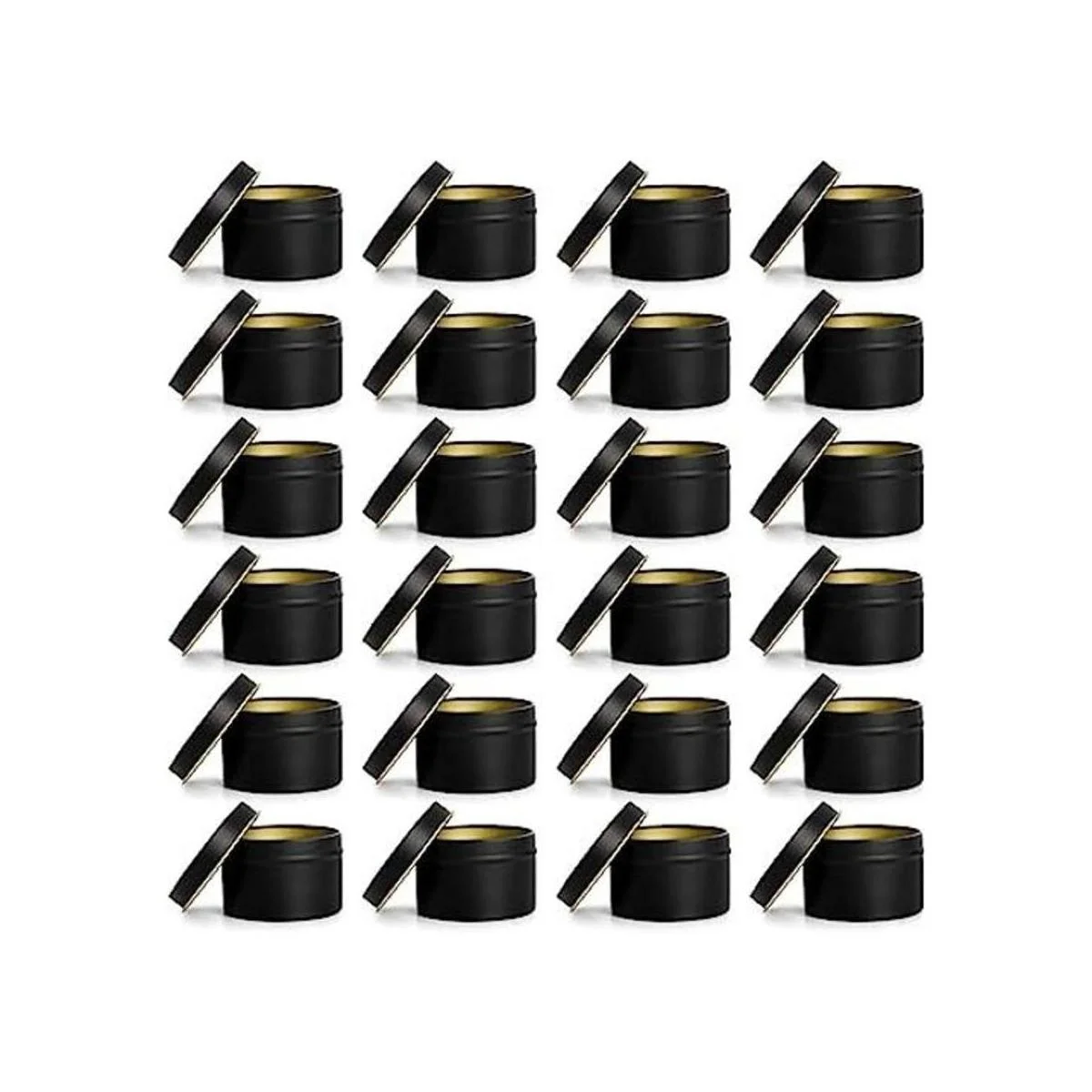 ZEAYEA 24 latas de vela, 4 oz de metal redondo con tapas de tornillo, latas de viaje, tarros de vela para hacer velas, artes y manualidades, almacenamiento y regalos de vacaciones, color negro