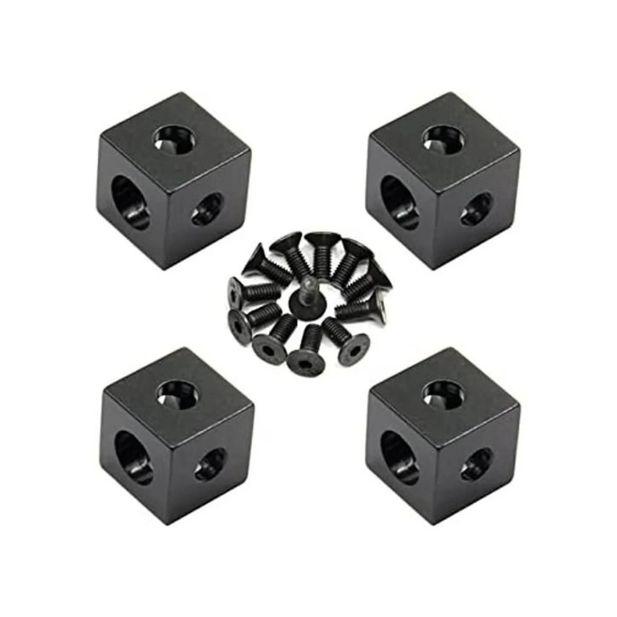 Zeberoxyz 4 piezas de soporte de esquina cubo negro con tornillos serie 2020 cubo de bloque de aluminio para ranura de 0.236 in perfil de extrusión de aluminio 3D accesorios de impresora 4 piezas cubo esquina con tornillos