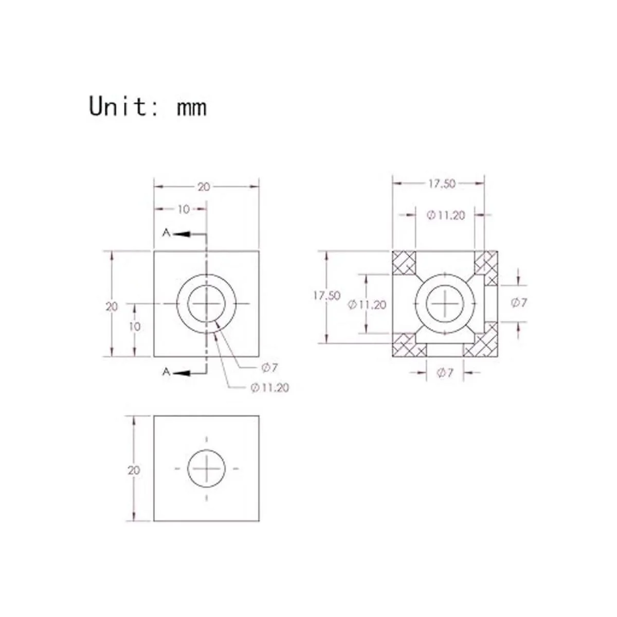 Dimensiones: 0.787 x 0.787 x 0.787 in largo x ancho x alto. Se adapta a la mayoría de extrusión de aluminio de la serie 2020