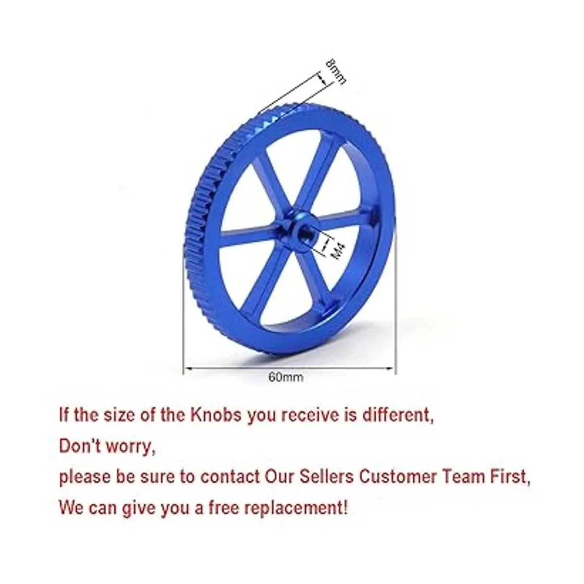 Lo que obtienes: 4 tuercas de nivel de giro a mano de aluminio azul, 4 resortes de troquel de cama caliente, 4 tornillos M4 x 1.575 in, nivelando la plataforma de impresión más fácilmente; Nota: Si el tamaño de las ruedas que recibas es diferente, asegúrate de ponerte en contacto con nuestro equipo de servicio al cliente de vendedores primero, podemos darte un reemplazo gratuito