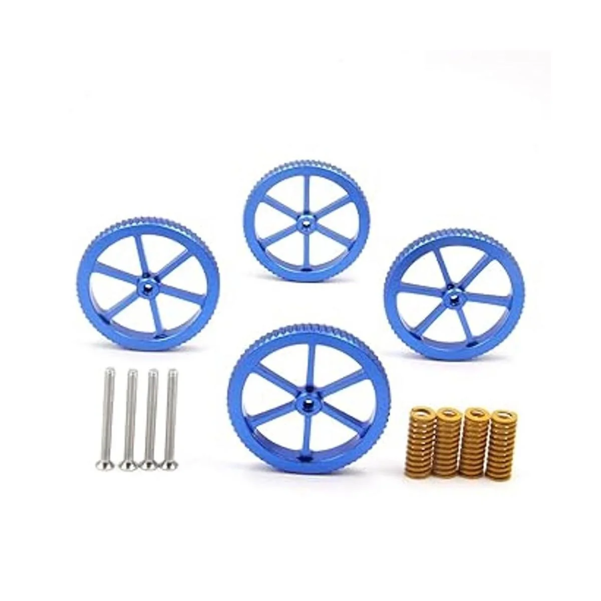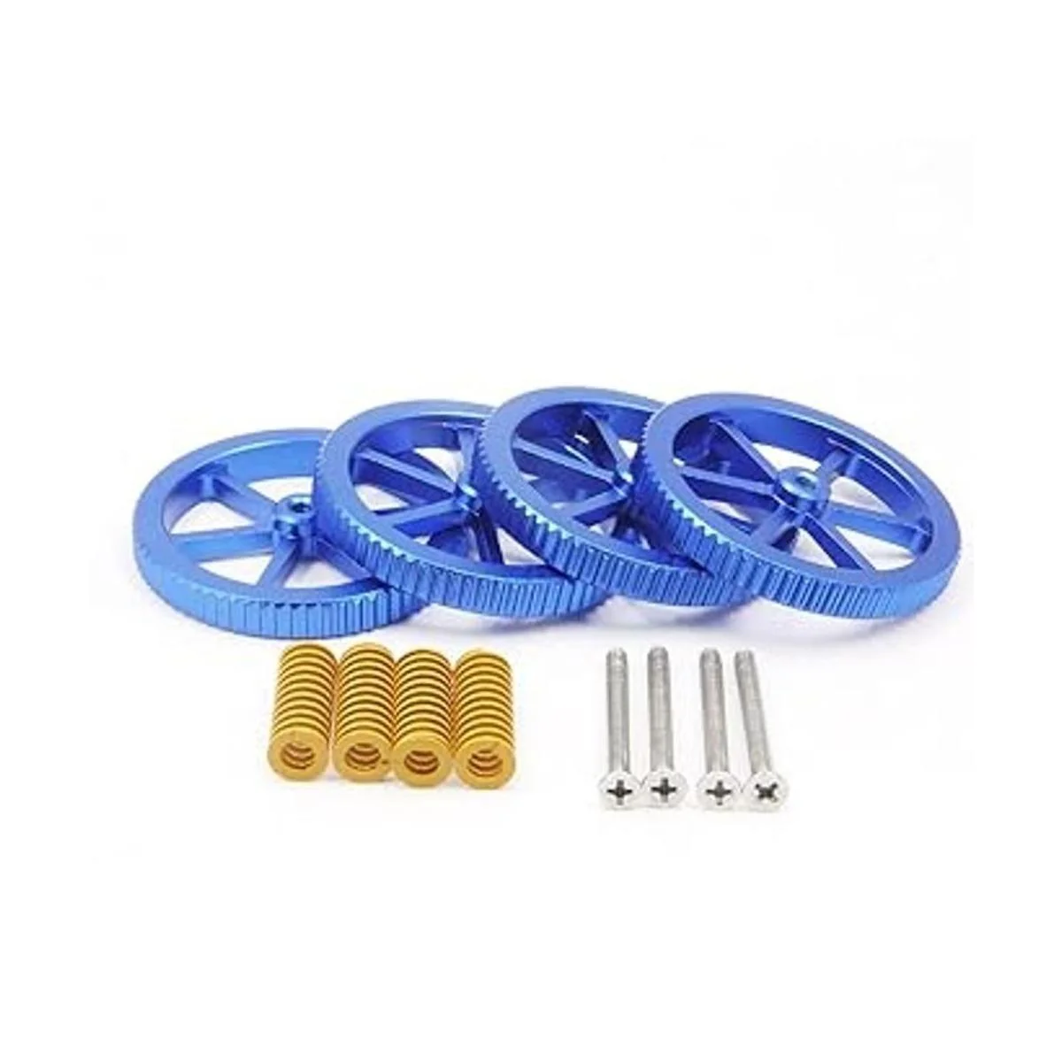 Zeberoxyz 4 piezas de tuerca de nivelación de aluminio de 2.362 in con 4 resortes de cama caliente con 4 tornillos M4 x 1.575 in para impresora Creality 3D CR10Ender3Ender 3 ProEnder 5 diámetro 2.362 in de aluminio