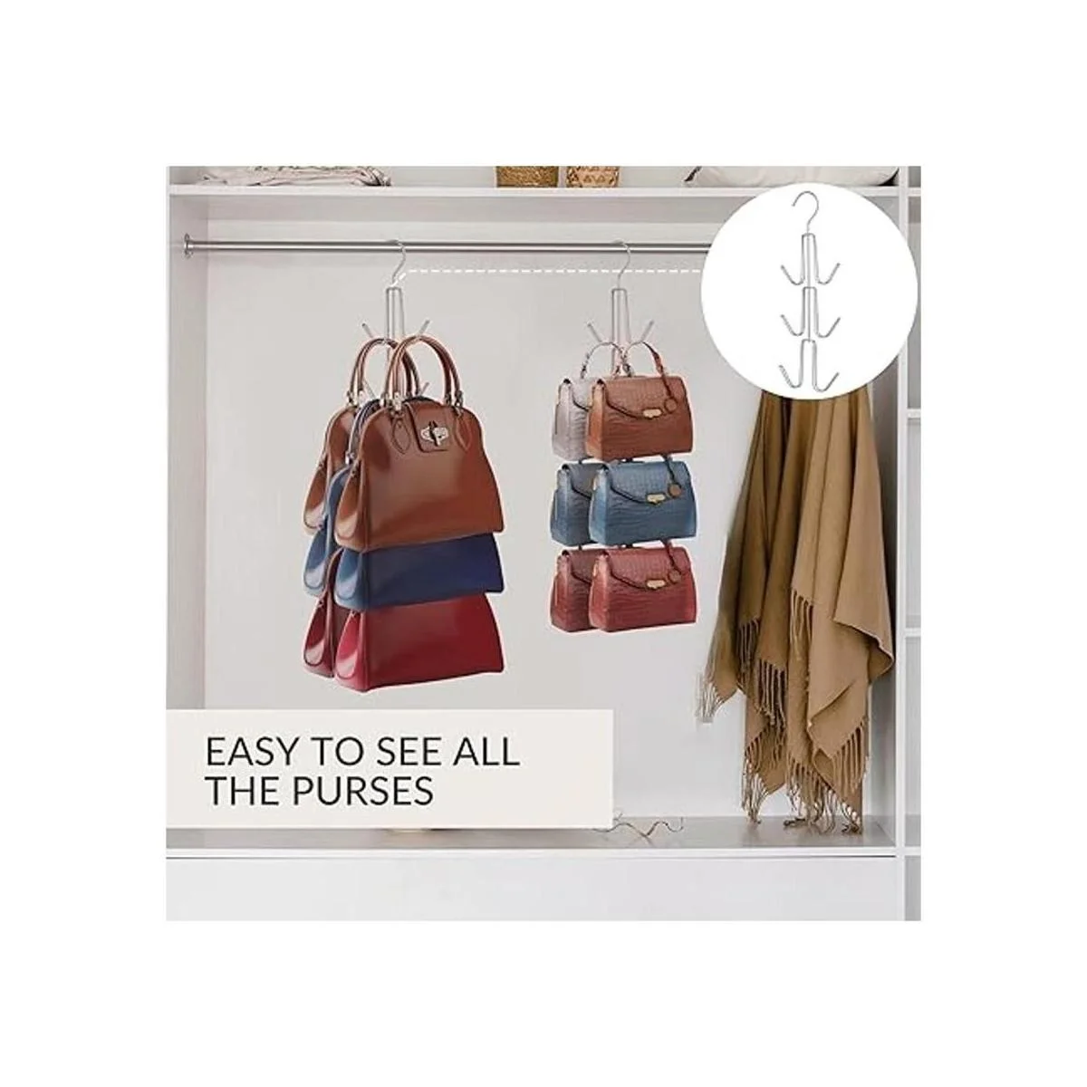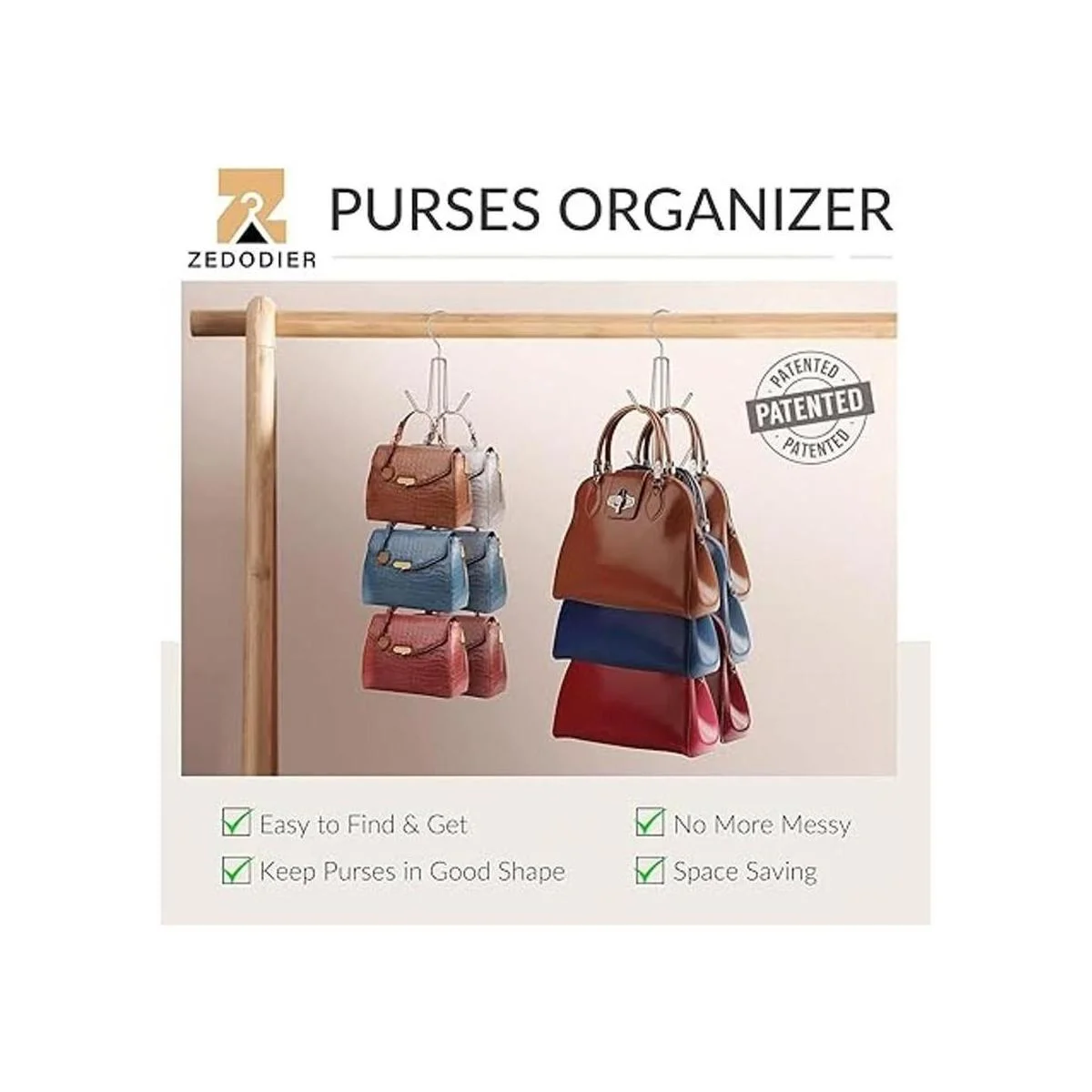 ZEDODIER Organizador para colgar monederos para armario, paquete de 2 soportes para bolsas colgantes, manteniendo los bolsos visibles y en buenas condiciones, gancho de almacenamiento de mano de metal, estante para mochila para ahorrar espacio, plateado