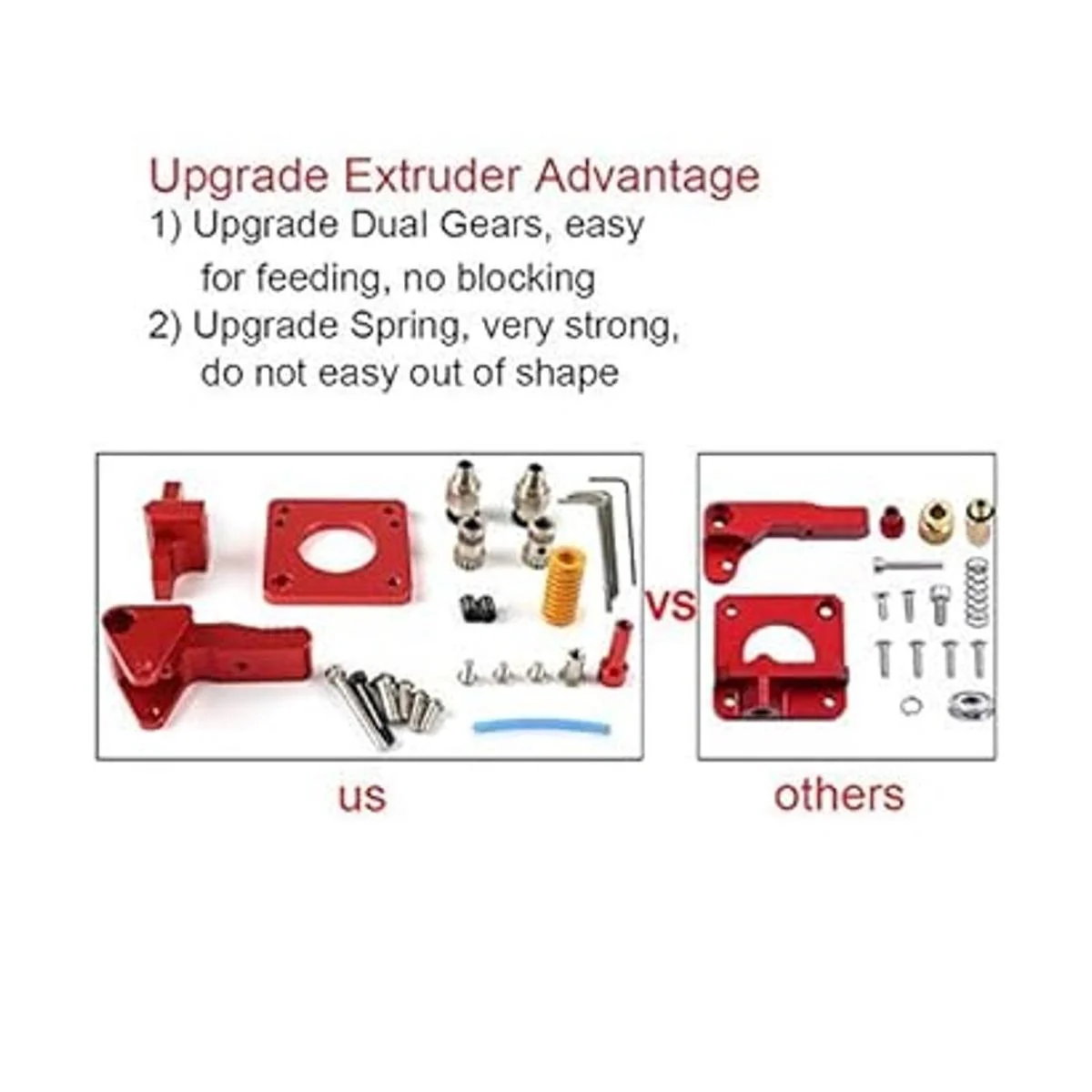 Ventajas del extrusor: mejora los engranajes duales, fácil de alimentar, sin bloqueo, mejor presión empuja el filamento en la boquilla de la impresora; resorte mejorado, muy fuerte, no se deforma fácilmente.