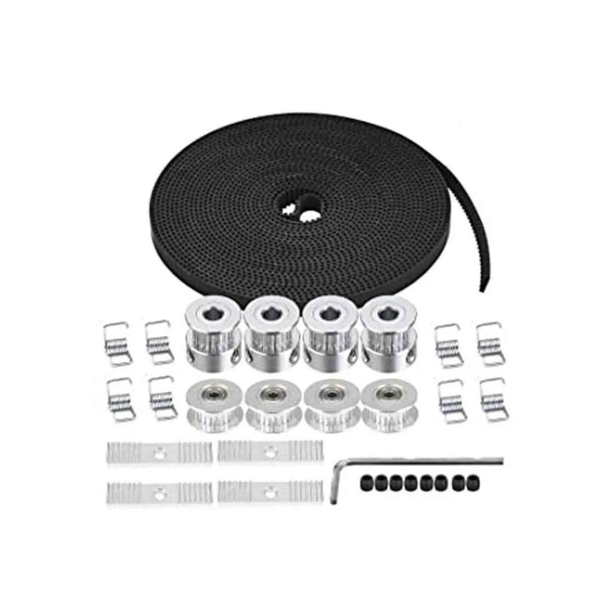 Zeelo 5M GT2 Correa dentada de 0.236 in de ancho 4 piezas de 20 dientes de 0.197 in de diámetro de rueda de polea 4 piezas de polea de giro 8 piezas de torsión de resorte tensor 4 piezas de bloque de montaje de abrazadera de engranaje con llave Allen para impresora 3D