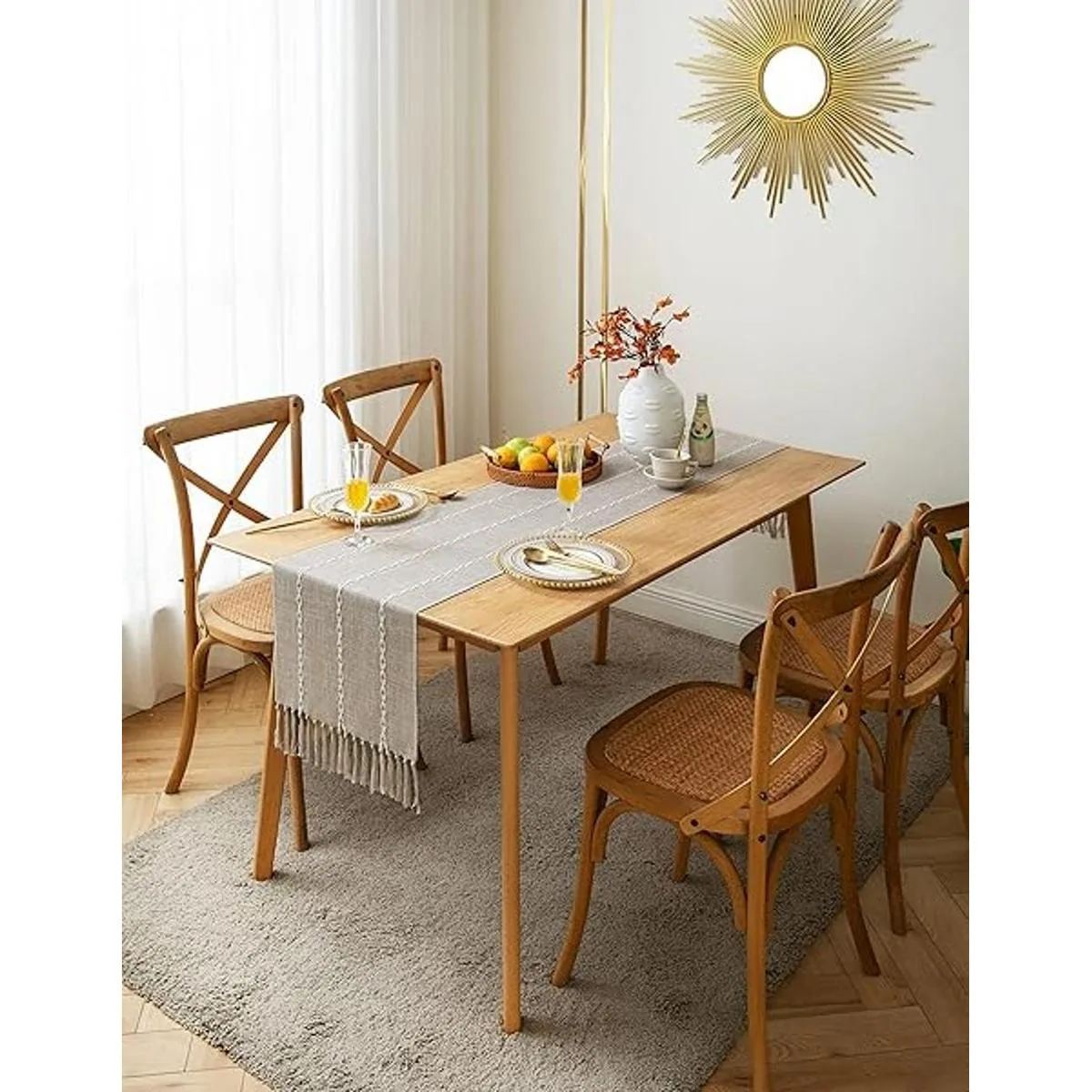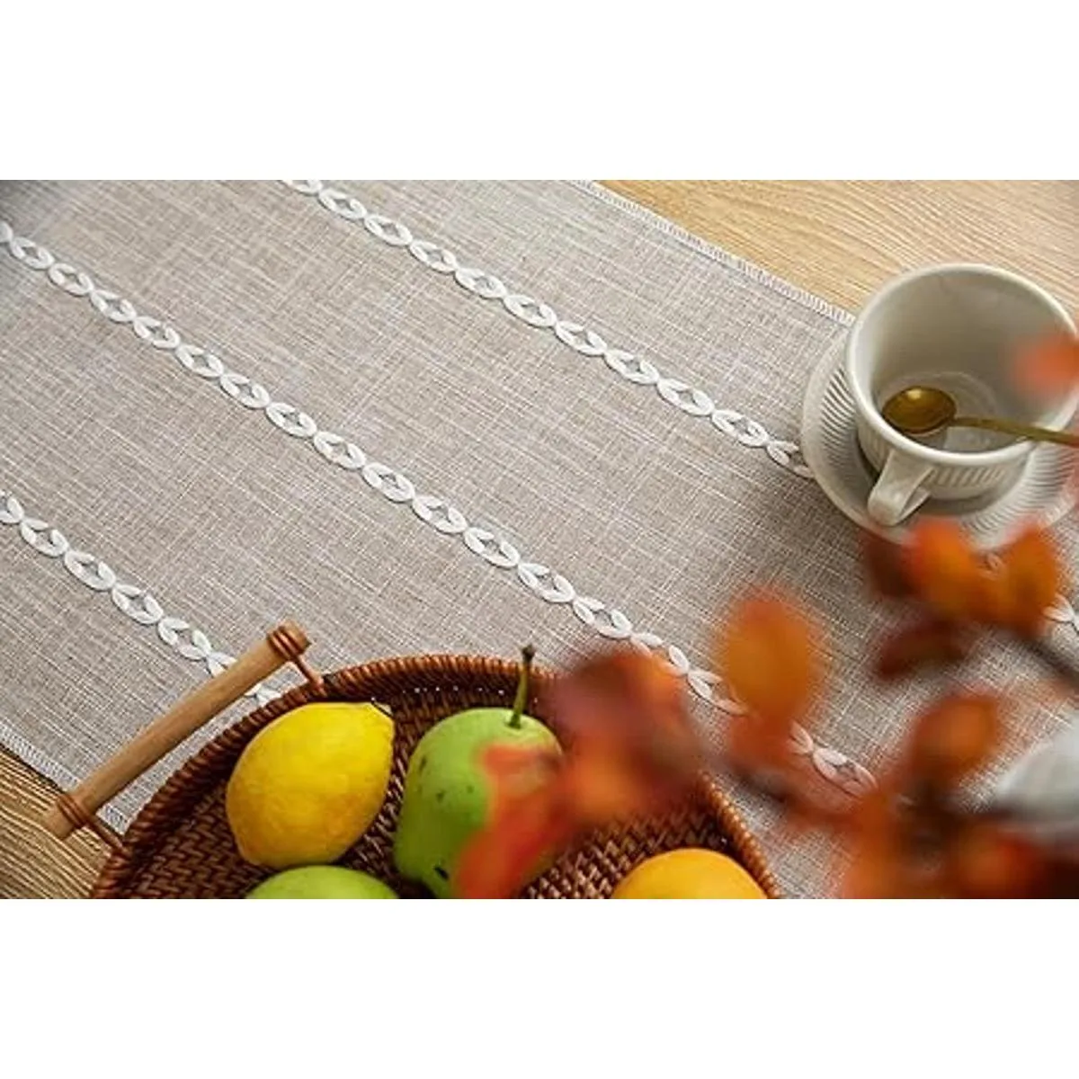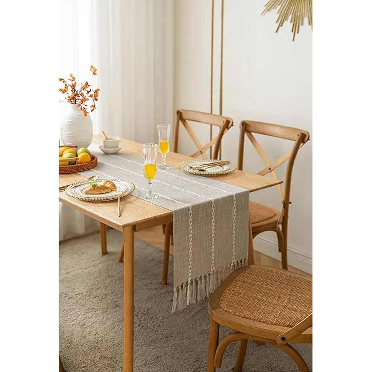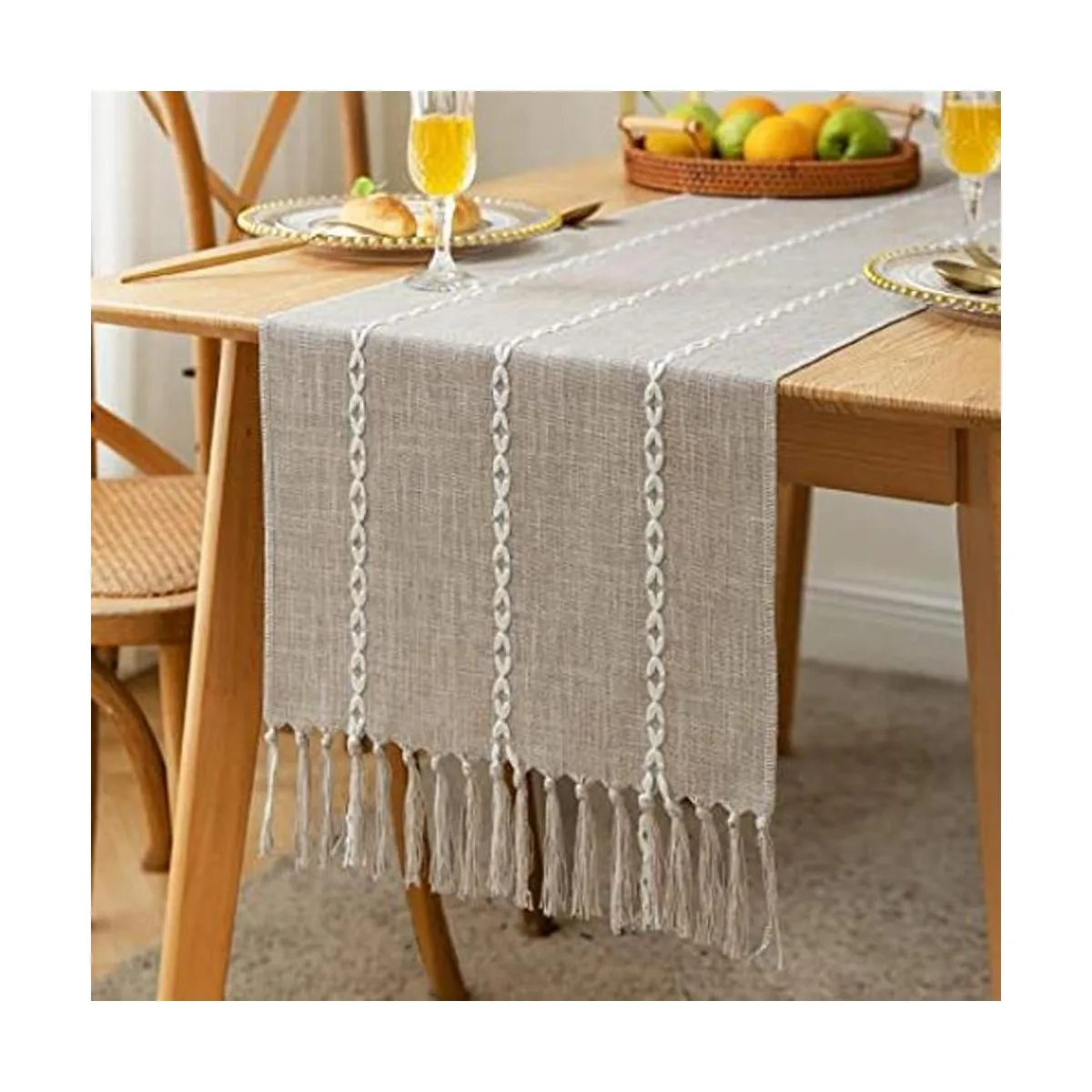 Materiales detallados y mano de obra: hecho de poliéster de lino de alta calidad, hace que sea elegante, también cómodo al tacto, resistente y antiarrugas, bueno para el uso diario. Estos hermosos caminos de mesa están decorados con rayas trenzadas, borlas hechas a mano en cada extremo, añaden mucha elegancia y encanto a tu hogar.