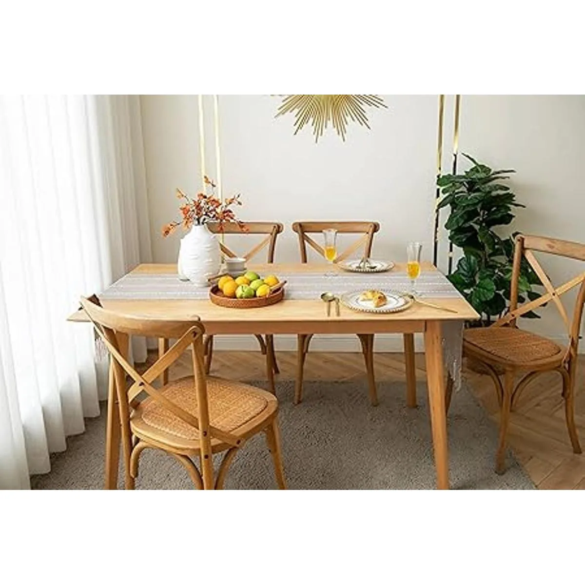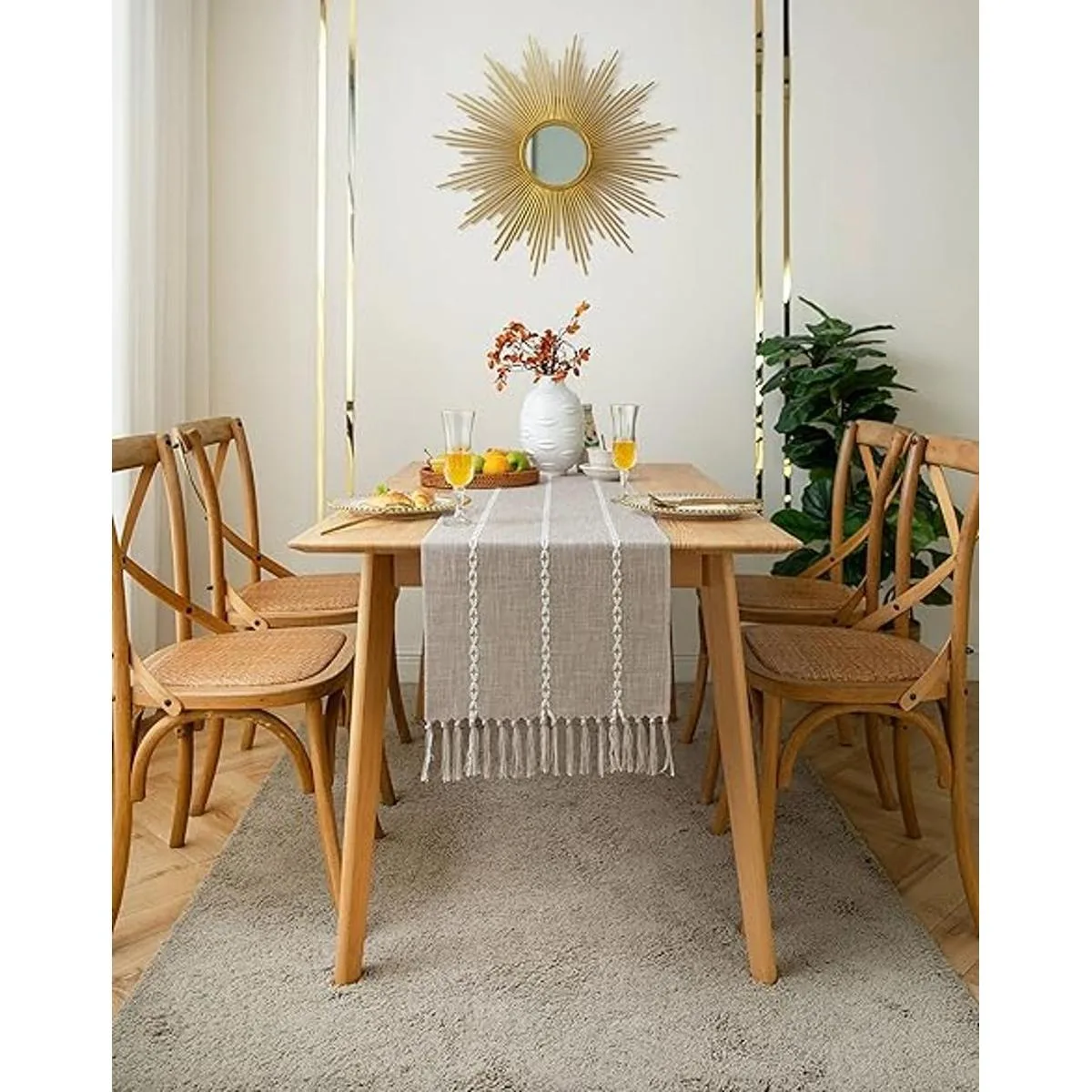 ZeeMart Camino de mesa de granja, camino de mesa rústico de 60 pulgadas de largo, camino de mesa bohemio de lino trenzado a rayas para comedor, fiesta, vacaciones, 15 x 60 pulgadas, trenzado gris pardo pálido
