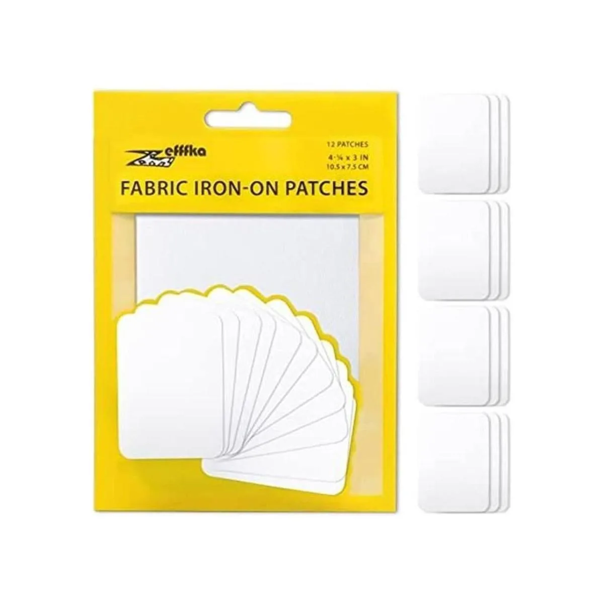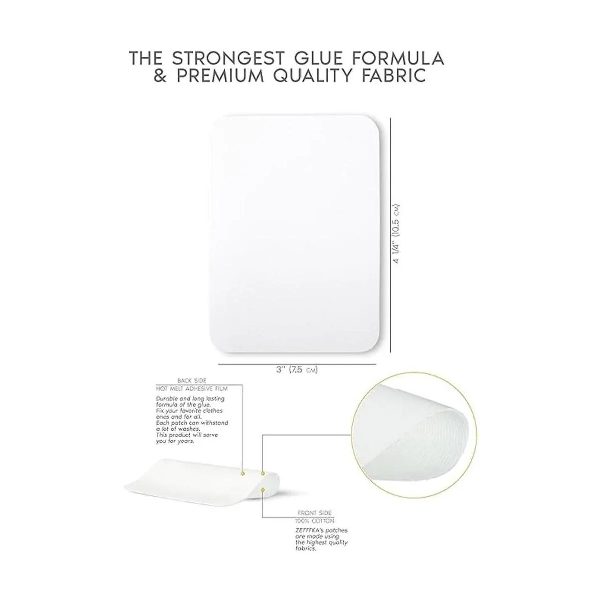 ZEFFFKA Parches de tela de alta calidad para planchar en interiores y exteriores, pegamento más fuerte, 100 algodón, blanco, kit de decoración de reparación de 12 piezas, tamaño 3 x 414 pulgadas 3.0 in x 4.1 in