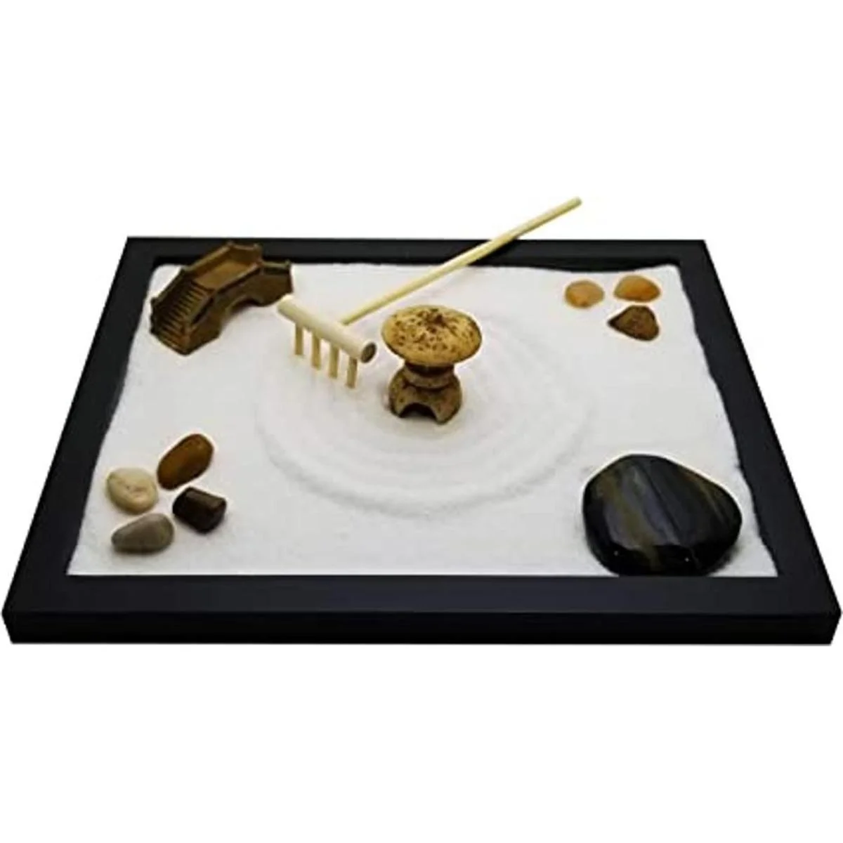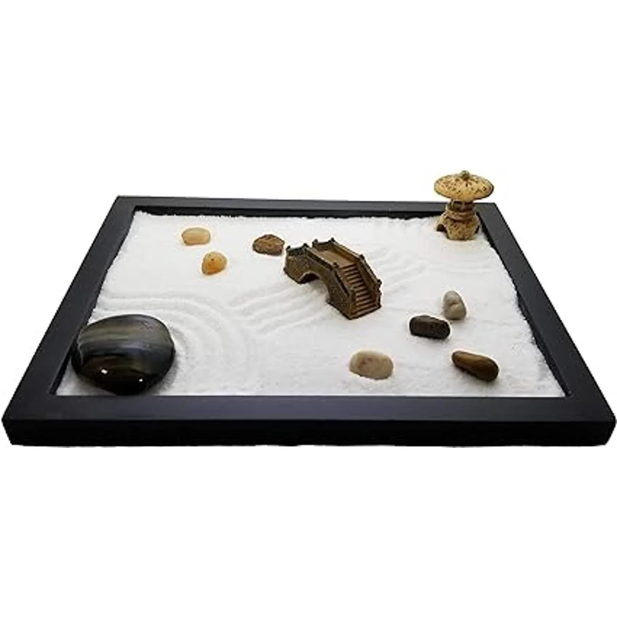 Zen Sand Garden para escritorio con rastrillo, rocas y figuras tamaño mediano