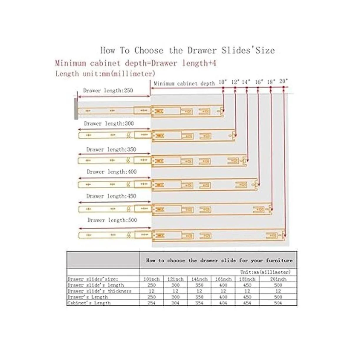 Zengest Extensión completa con rodamiento de bolas con menos ruido, 10 pulgadas, 1 par