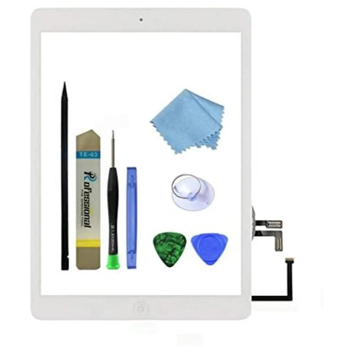 Zentop Para IPad Air blanco 1 generación de pantalla táctil digitalizador de vidrio de repuesto modelo A1474 A1475 A1476 con botón de inicio, soporte de cámara, adhesivo preinstalado, kit de herramientas.