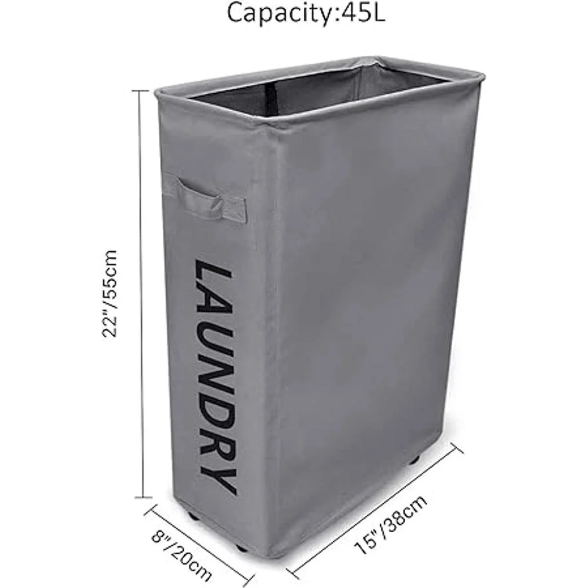 ZERO JET LAG Cesta delgada de 45 L sobre ruedas, cesta de lavandería fina, canasta de ropa alta, canasta de almacenamiento, organizador para dormitorio, baño, 15 x 8 x 22 pulgadas 22 pulgadas, gris