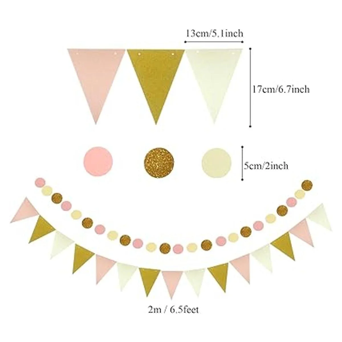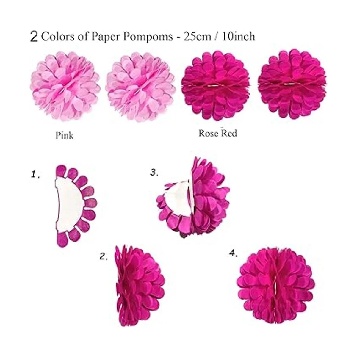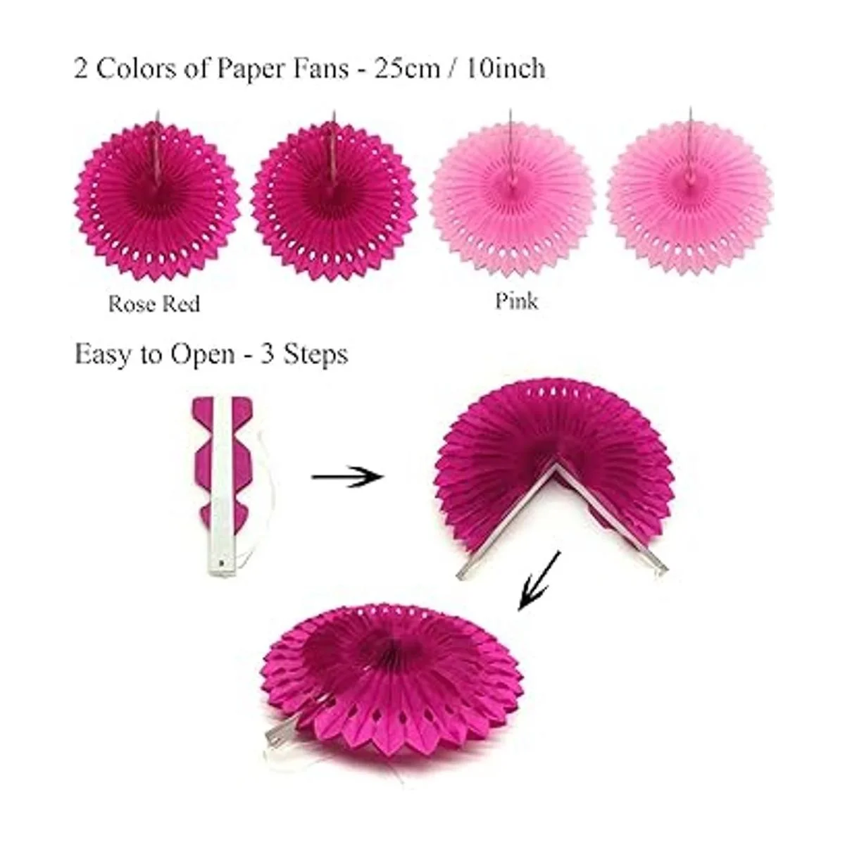 ZERODECO Juego de abanicos de papel para colgar fiestas, globos de confeti rosados, adornos plegables, pompones de papel, banderines triangulares, guirnaldas para bodas, cumpleaños, baby shower, fotos, telón de fondo