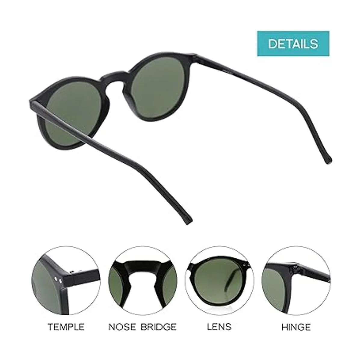 zeroUV Lentes de sol redondos con montura de cuerno retro vintage con puente de ojo de cerradura P3 (negro/verde)