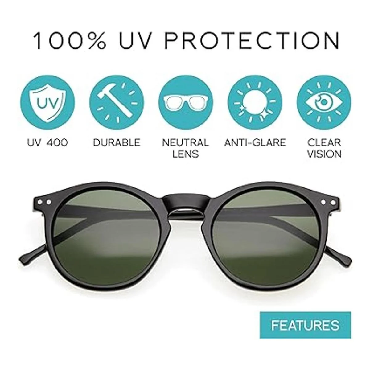 zeroUV Lentes de sol redondos con montura de cuerno retro