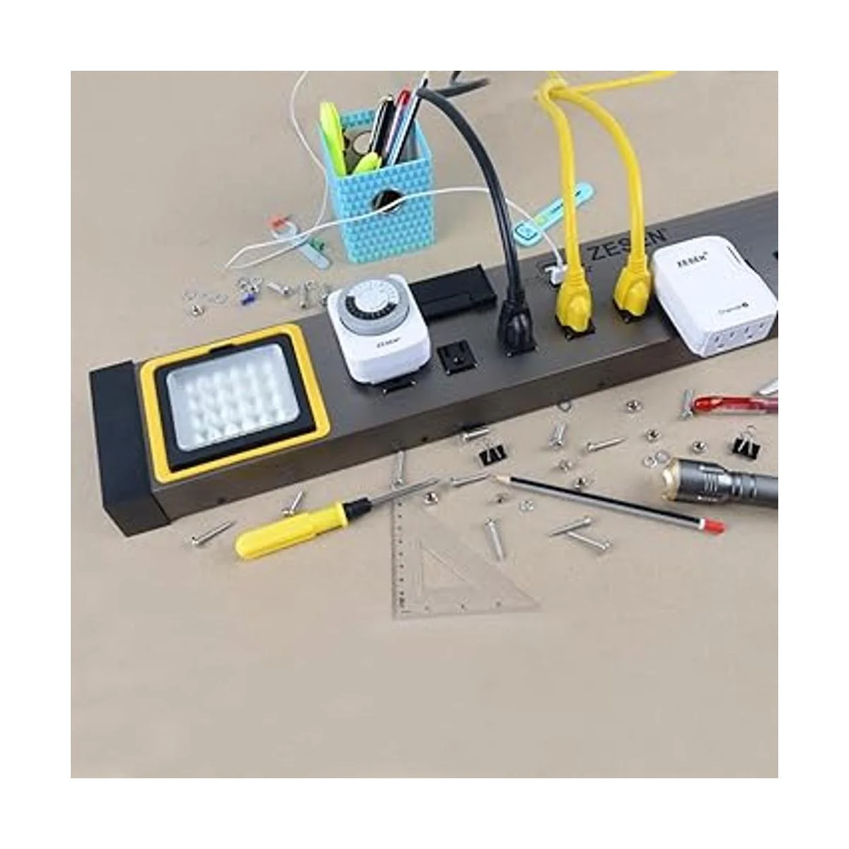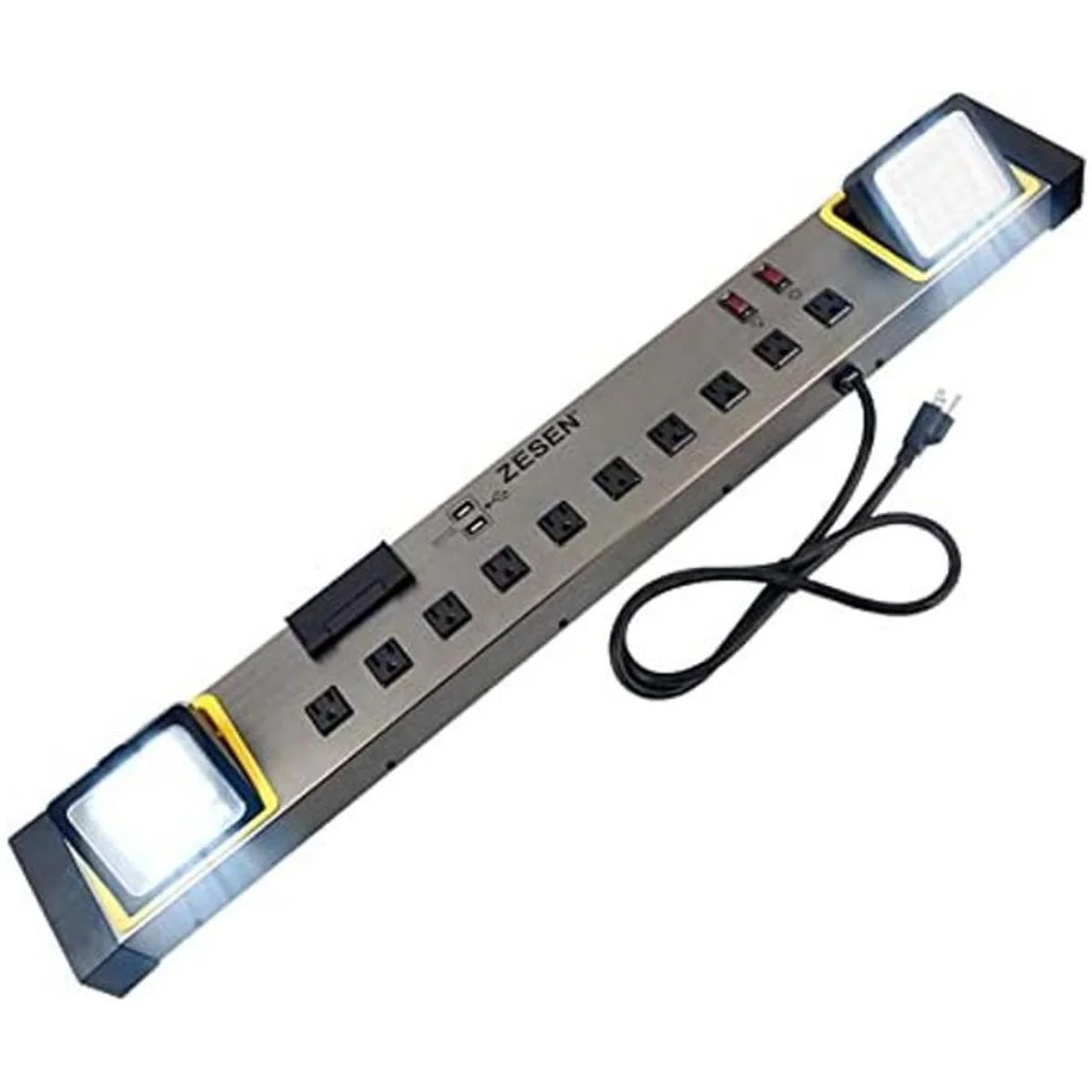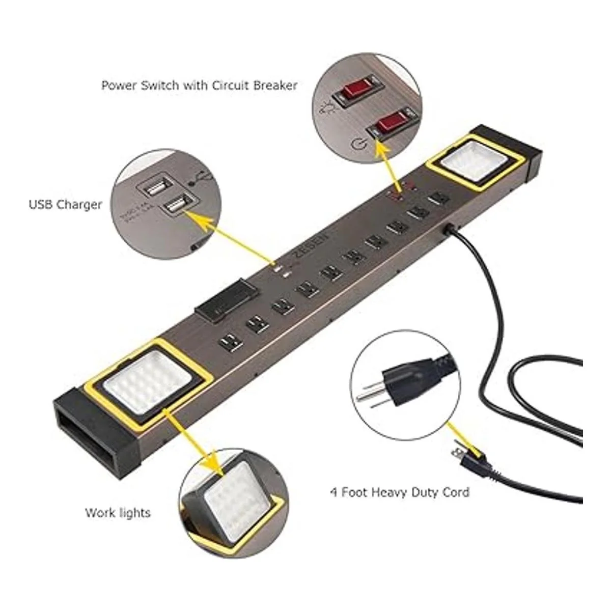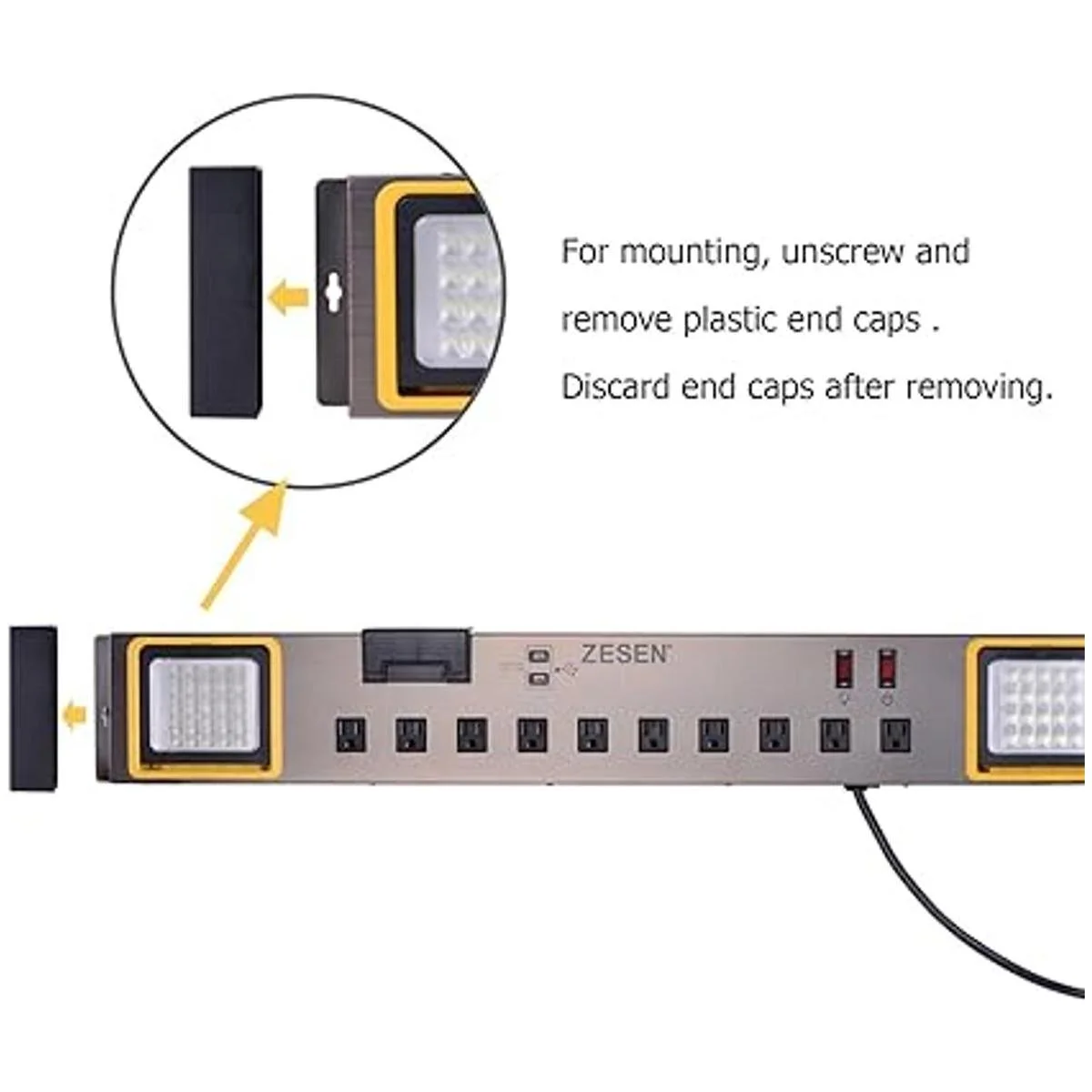 ZESEN 10 tomas de corriente con luz de trabajo LED protector contra sobretensiones cable de 3.9 ft con USB inteligente dual, tallergarajeoficinahogar, lista ETL