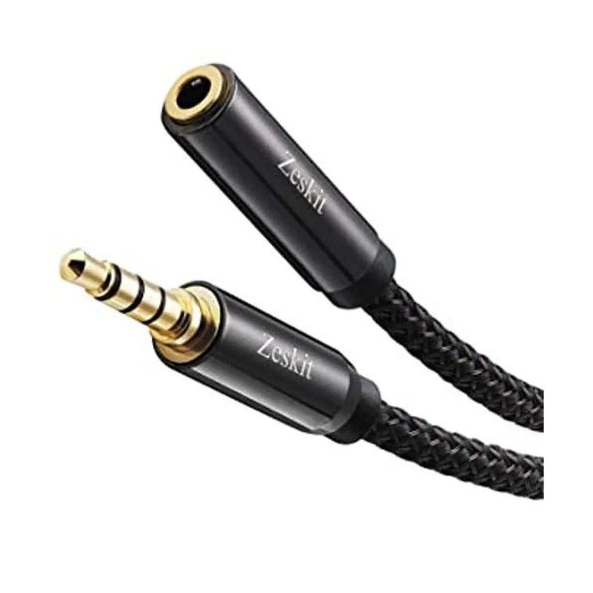 Zeskit Cable de extensión de audio AUX de 0.138 in macho a hembra de 0.138 in, TRRS 4 polos para auriculares con micrófono, altavoces 5.9 ft