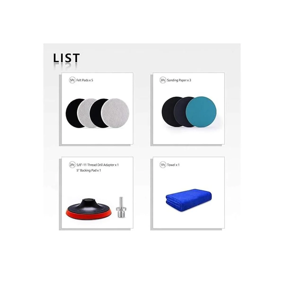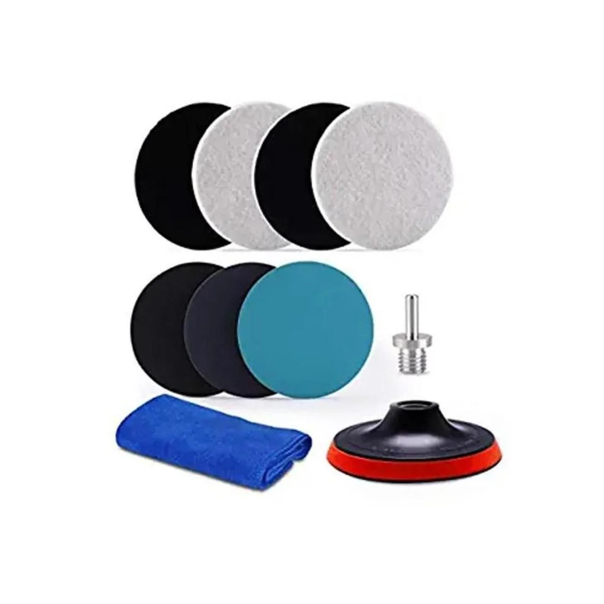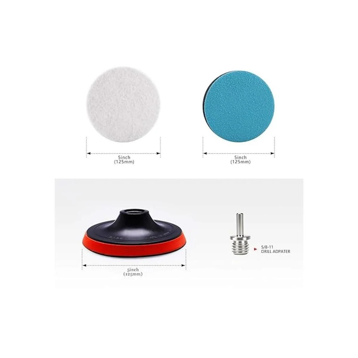 ZFE Almohadillas de pulido de vidrio de 5 pulgadas, 10 unidades de disco de fieltro de lana para pulir, discos de lijado con almohadilla de respaldo y adaptador de taladro M14 para herramientas giratorias, vidrio pulido y metal