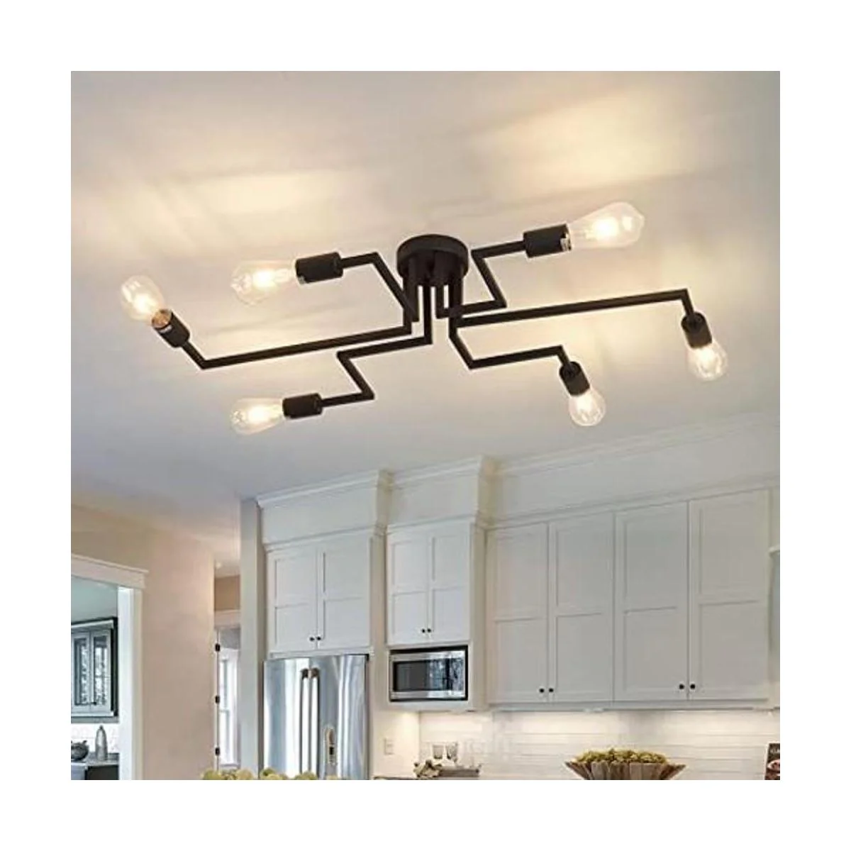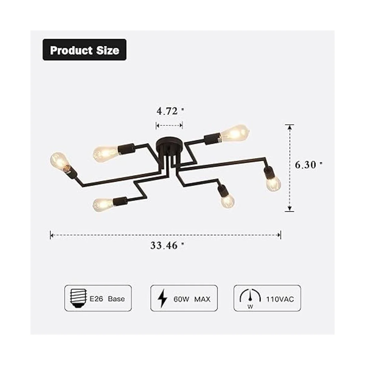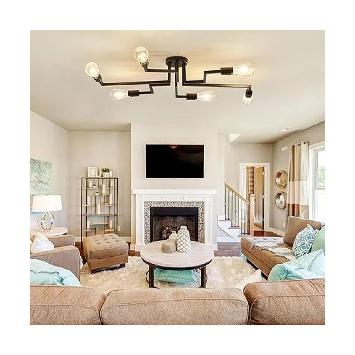 ZGLAOJT Lámpara de techo de 6 luces, lámpara de techo vintage semiempotrada, lámpara de araña negra para comedor, sala de estar, cocina, casa de campo.