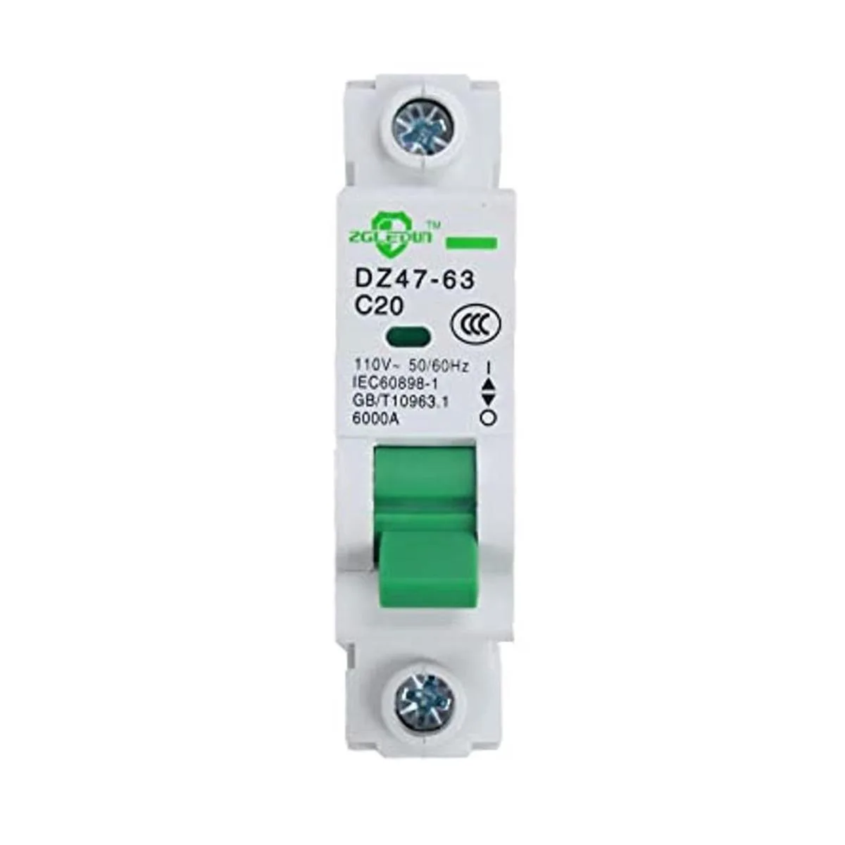 ZGLEDUN Disyuntor en miniatura Mini disyuntor doméstico de CA 120 V240 V DZ4763 Montaje en riel DIN 1P 20A