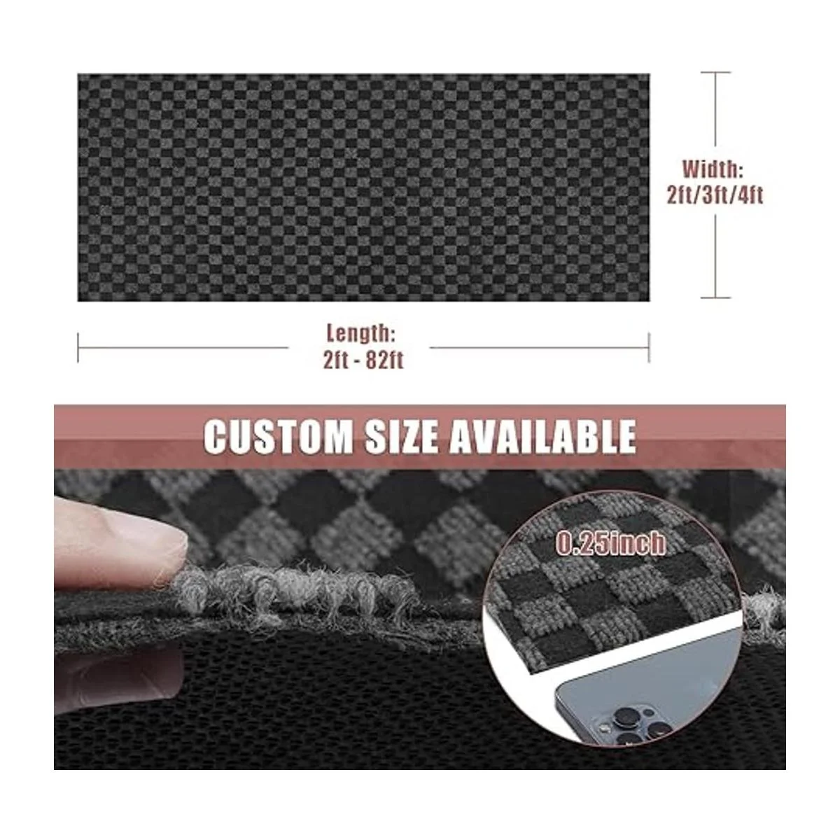 ZGR Alfombra de pasillo de 2 x 6 pies, alfombra de pasillo para interiores y exteriores, cocina, entrada, dormitorio, con respaldo de goma antideslizante natural, tapete de garaje, negro a cuadros, personalizado