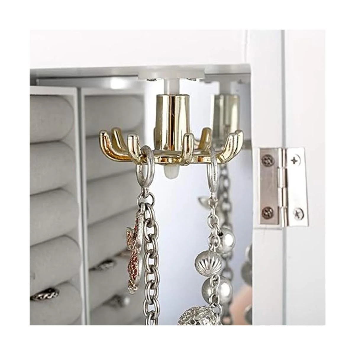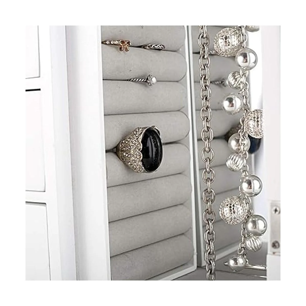 Material: hecho de tablero de fibra de densidad media de alta calidad, este joyero tiene un estilo personalizado e innovador, ocultando todos tus accesorios