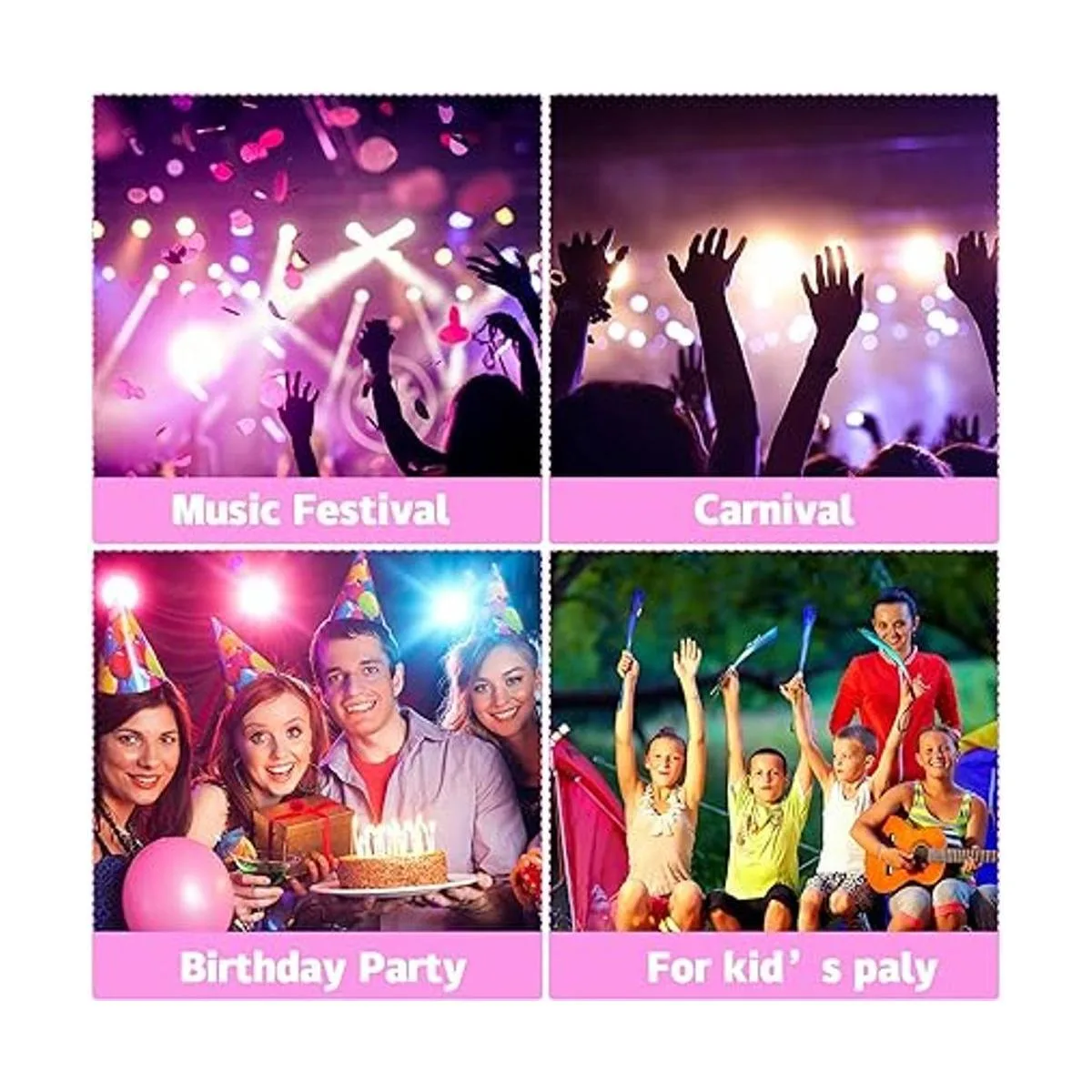 Múltiples funciones: los palos de varita brillantes tienen asas de 4 colores, incluyendo rosa, verde, azul y amarillo, brillante y encantador; con capa por capa para hacer que toda la barra brille, estos palos de varita tienen 3 funciones cuando presionas el botón 3 veces, parpadeo rápido, parpadeo lento y constante, llamativo y brillante