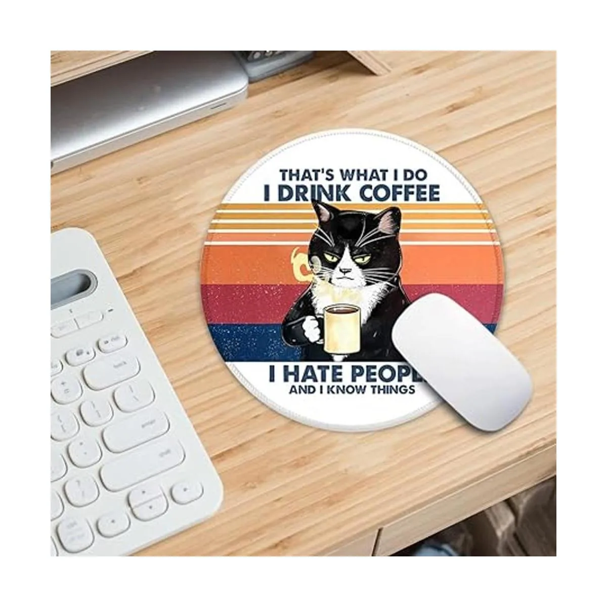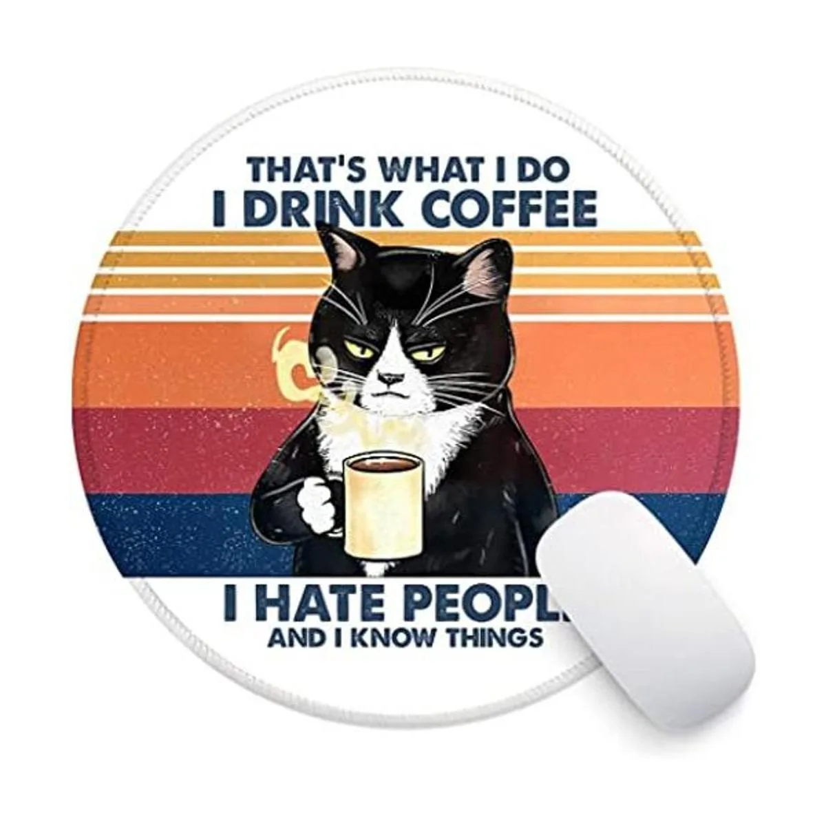 ZHANTUONE Divertido tapete de ratón redondo para gatos con goma antideslizante y bordes cosidos, accesorios de escritorio, regalos de oficina, para mujeres, amigos, hija, amistad, colegas, profesores, amantes de los gatos, regalos de cumpleaños